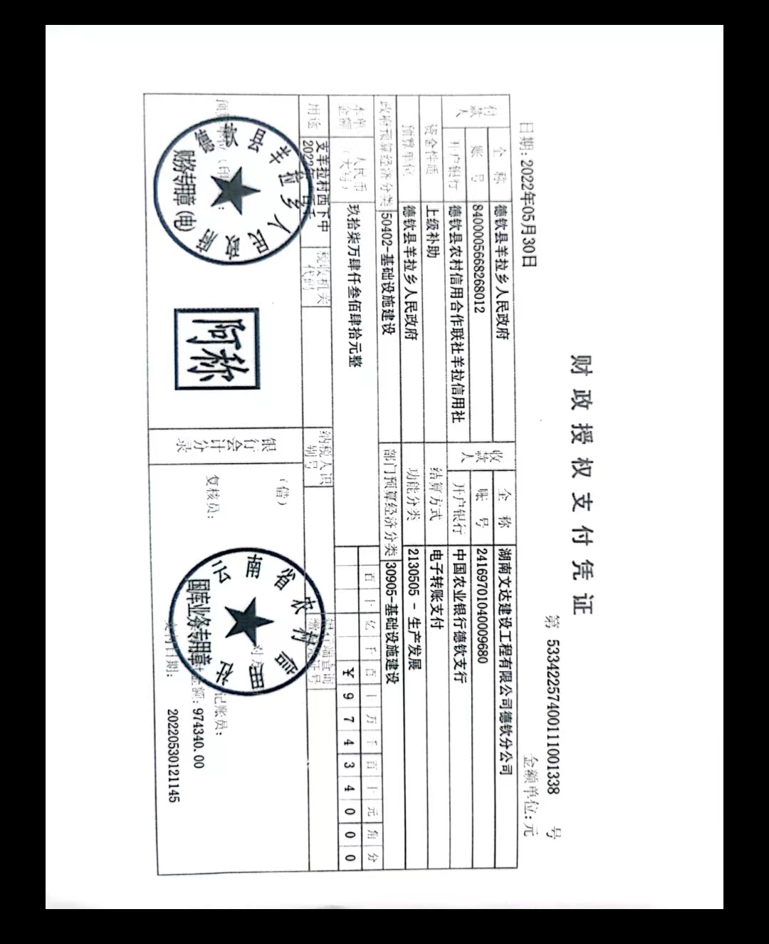 财政授权支付凭证 | 2022.5.30 | 97.434 |