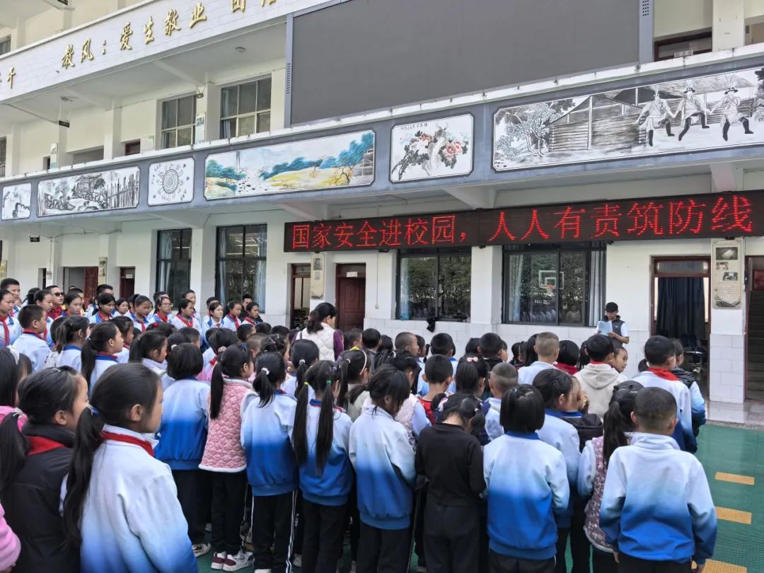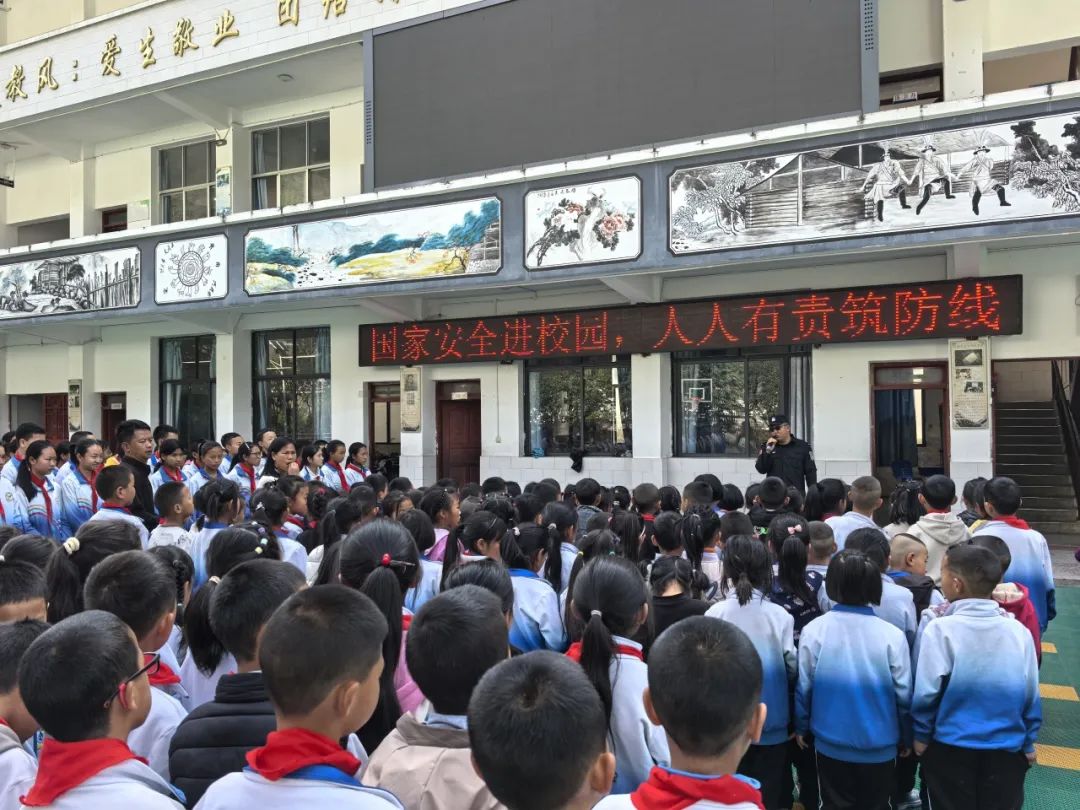 童心绘安全,小手拉大手共筑安全网。在叶枝中心校开展“国家安全进校园”主题活动,派出所民警和司法所工作人员以《中华人民共和国国家安全法》为核心,结合青少年案例,用通俗易懂的语言讲解维护国家安全的重要性,重点讲清“什么是国家安全”“如何识别危害国家安全行为”,同时,组织全校师生观看“4.15”全民国家安全教育日主题宣传片,引导学生树立“国家利益高于一切”的意识。