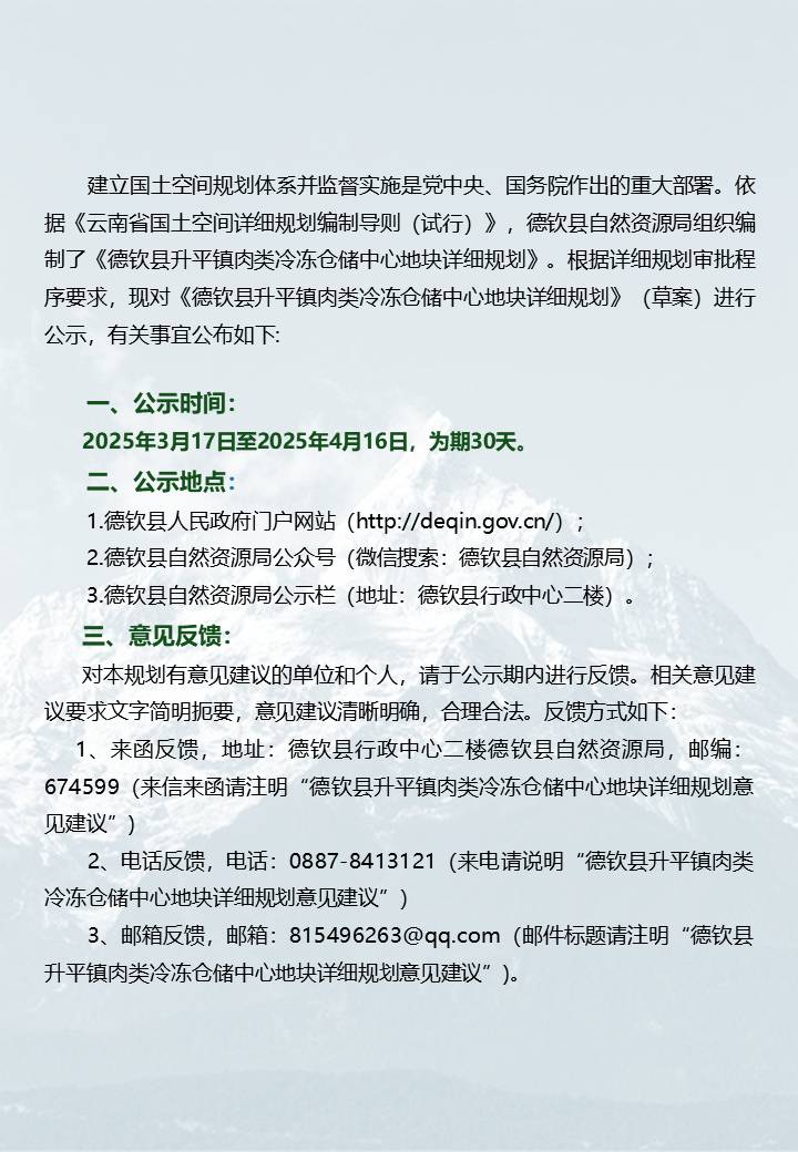 德钦县升平镇肉类冷冻仓储中心地块详细规划(草案公示)