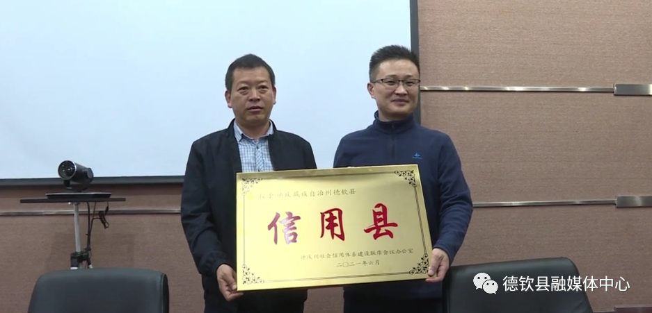 会上,和凤军为德钦县授予了“信用县”牌匾。