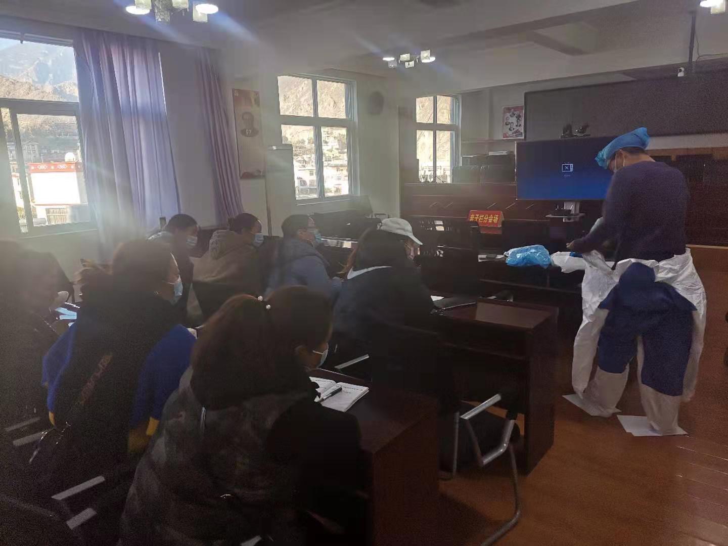 为进一步做好奔子栏镇各村卫生室新冠肺炎疫情防控工作,进一步做好2021年冬春季节农村地区新冠肺炎疫情防控工作,强化基层医疗卫生机构在新冠肺炎疫情防控中的“前哨”作用,提高基层医疗卫生机构对新冠肺炎患者的早期识别和应急处置能力,奔子栏卫生院于2021年1月25日,开展了对辖区村卫生室村医关于穿脱防护服、核酸采样等方面的培训工作。奔子栏镇各村10名村医参加,通过此次培训让各村卫生室人员能在出现应急情况之时能更加有序开展疫情防控工作,确保自身防护及保障辖区居民健康。
