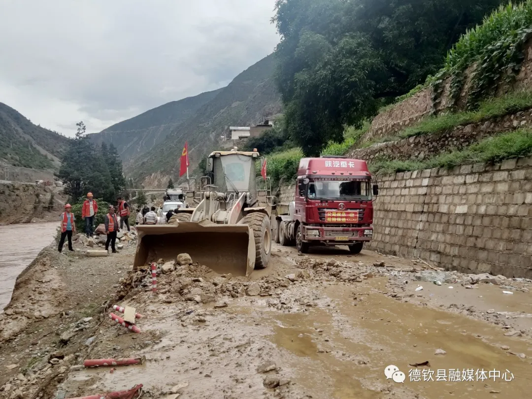 2021年7月18日14时左右,受强降水影响,德钦公路分局所辖德钦至勐堆公路德维线K28+900、K31+740、K43+100等多处路段发生泥石流灾害,导致德钦至燕门多路段发生不同程度的阻断,分局云岭管理所和机械化养护和应急中心人员正在抢通中,因部分受阻路段需要等泥石流清运车到达现场后才能开展清理工作,故受阻时间较长,通车时间待定。
