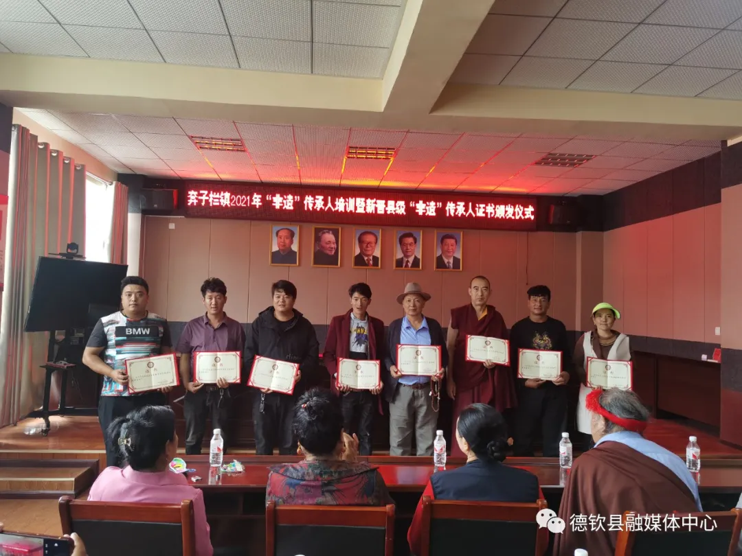 最后,颁发了2021年度新晋县级各类传承人证书。据悉,2021年奔子栏镇申报传统歌舞、传统技艺等各类传承人共10名,申报成功9名。截至目前,奔子栏镇有国家级非物质文化遗产项目代表性传承人2名、省级4名、州级2名、县级27名。