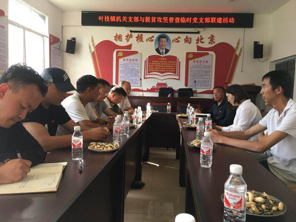 2020年8月3日,叶枝镇机关党支部与驻镇脱贫攻坚普查临时党支部开展支部联建活动。此次党支部联建活动有力增进了脱贫攻坚普查组党员与乡镇机关党员之间交流,对进一步深化和巩固脱贫攻坚成果发挥了积极作用。