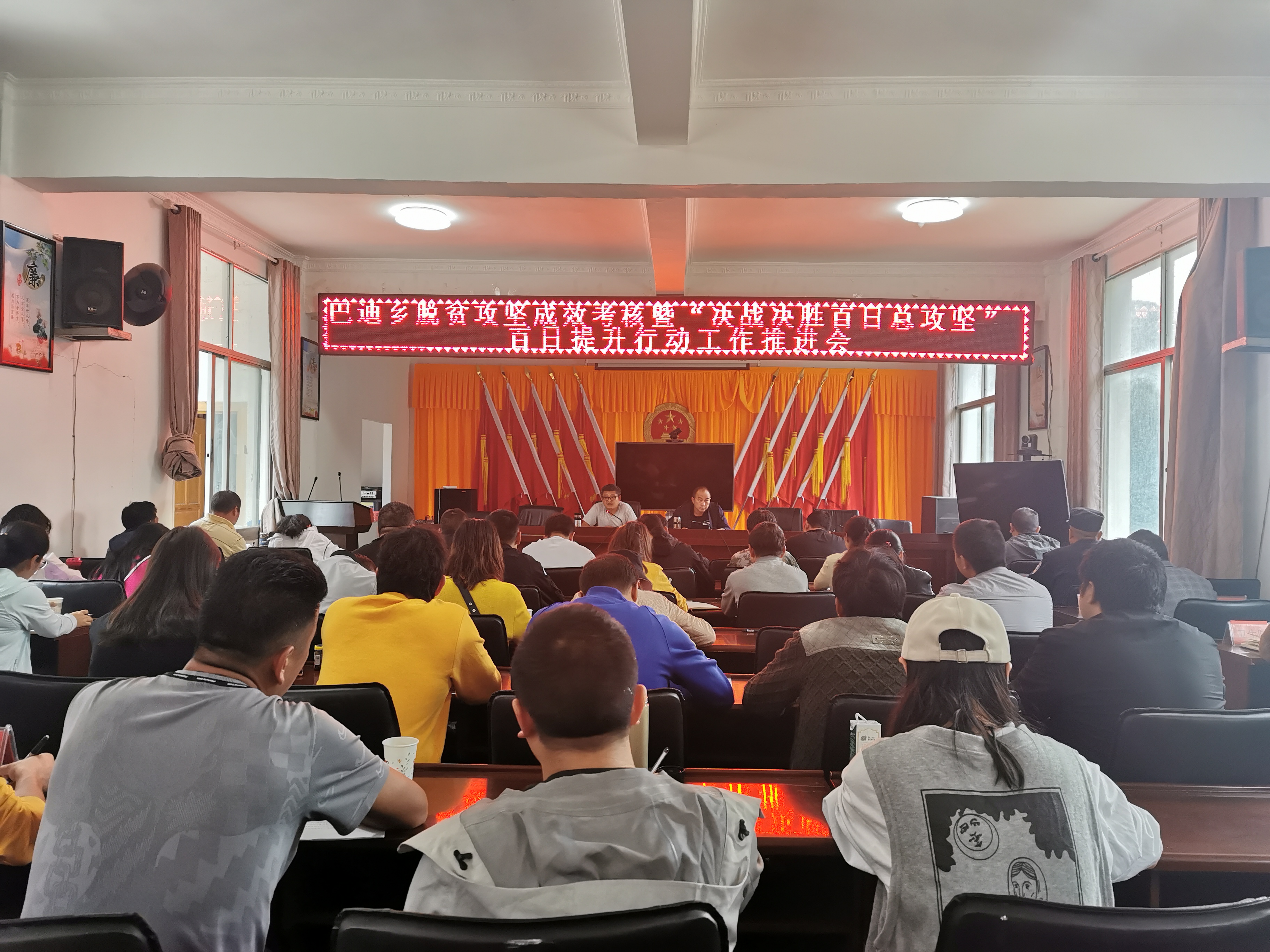 为全面落实2020年度县扶贫开发领导小组第11次会议暨全县贫困对象动态管理启动和考核迎检部署工作会议精神,2020年10月12日,巴迪乡召开脱贫攻坚成效考核暨“决战决胜百日总攻坚”百日提升行动推进会,全乡干部职工、各村“两委”成员、县驻乡单位负责人以及驻村工作队员参加会议。