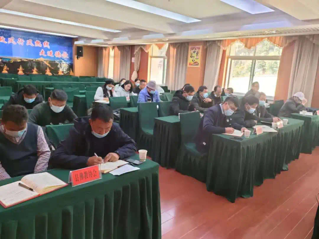 县委统战部常务副部长和玉宝代表县委统战部、县民宗局作2020年度工作总结,云岭乡寺院管理局和奔子栏镇寺院管理局作交流发言。发言紧紧围绕2020年所取得的工作成效,分享先进、科学经验,明确存在的困难及改进措施,为下一步统战民宗工作提供更多可借鉴的方法和举措。