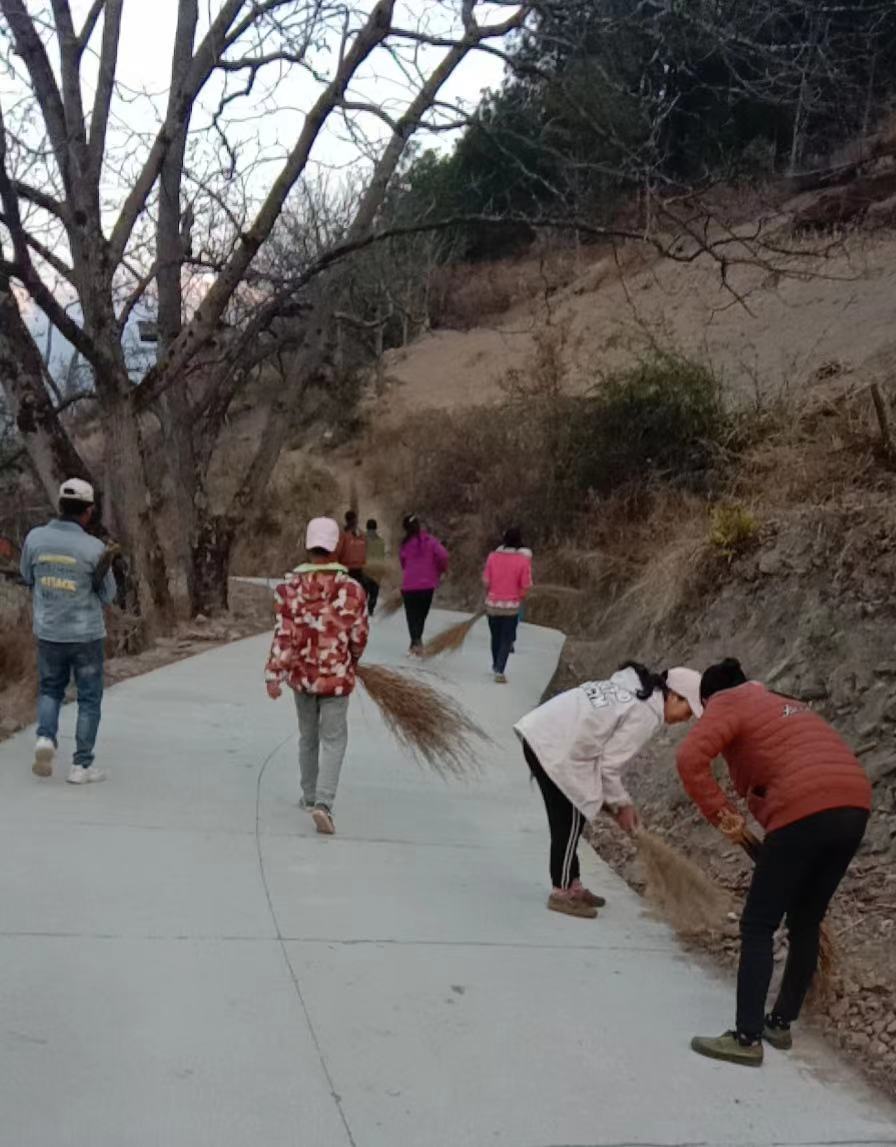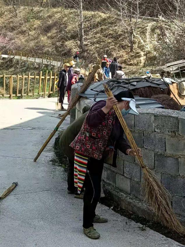 马干组群众清理侧沟 阿尺组群众组织清扫路面