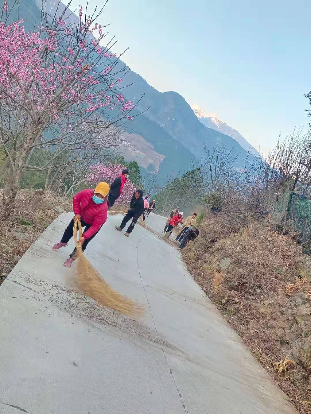弄独组组织村民从移民桥开始沿二级路一直到勺挖洛桥进行垃圾清理。