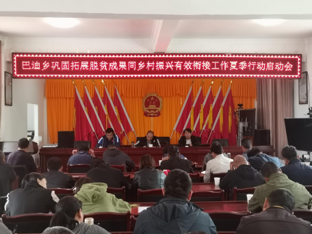 为深入学习上级各类会议精神,抓好州扶贫开发领导小组第一次会议和县扶贫开发领导小组第三次会议的工作要求,健全完善“脱贫不稳定户、边缘易致贫户”预警监测和动态帮扶机制,巩固拓展脱贫攻坚成果同乡村振兴有效衔接,按照“四不摘”要求,在“巩固拓展脱贫攻坚成果春季行动”的基础上,我乡于2021年5月6日召开“巴迪乡巩固拓展脱贫攻坚成果同乡村振兴有效衔接工作夏季行动启动会”,全乡干部职工、各村“两委”成员、县驻乡单位负责人以及驻村工作队员参加了此次会议。