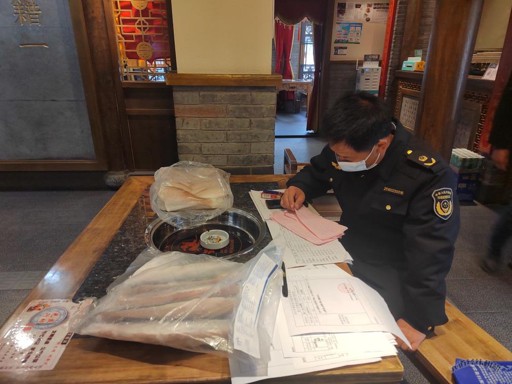 此次排查工作主要以进口冷链食品经营户为重点场所,覆盖经营、储存、餐饮全环节,执法执法人员重点检查进口冷链食品经营单位是否严格落实疫情防控措施,做好入库检查,查验入境货物检验检疫证明、集中监管仓出库证明、新冠病毒核酸阴性检测报告、消毒证明、随附追溯码等“四证一码”是否齐全情况进行大排查工作。