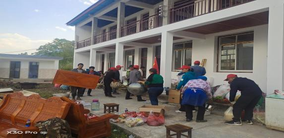 4月27日,在得到党委政府的同意后,巴丁村组织村“两委”、驻村工作队员、党员、群众共计30余人,利用人背肩扛徒步搬迁的方式和村民免费提供的三轮车,将余自新户的粮食、家具、衣被和各种生活用品全部搬到巴丁村完小旧址,并齐心协力为余自新户打扫房间、铺好床垫、接通电源、安装家具,把余自新的“新家”布置得井井有条,整洁有序。最后村“两委”和驻村工作队员还向余自新户送去了两床毛毯、两床被子、一桶食用油以防不时之需。