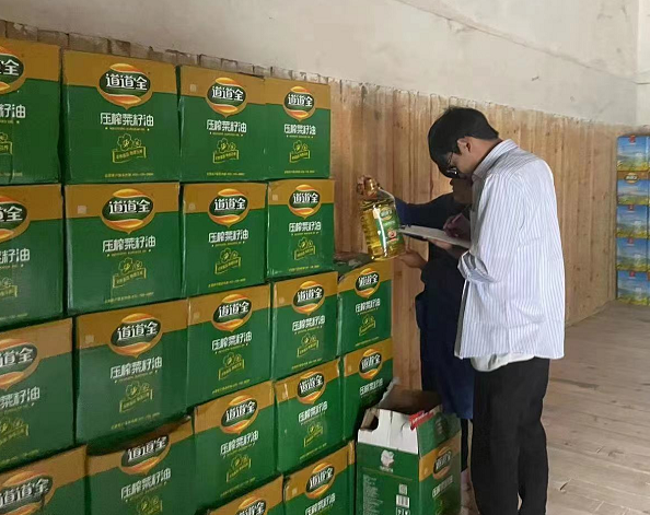 检查发现:仓库中广为稻花香大米共有206150kg,双喜五常大米6600kg,尚延香大米71900kg,雪花面粉5125kg,道道全压榨菜油105件,道道全精选菜油69件,道道全精炼大豆油203件,玉米149086.5kg,小麦188328kg,储存条件均达到要求,且所有储备粮食均有检验报告。本次检查共出动执法人员2人次,出动执法车辆1辆,通过此次专项整治,有效规范了辖区储备粮经营秩序,为广大人民群众购买粮食产品提供了安全可靠的市场环境。