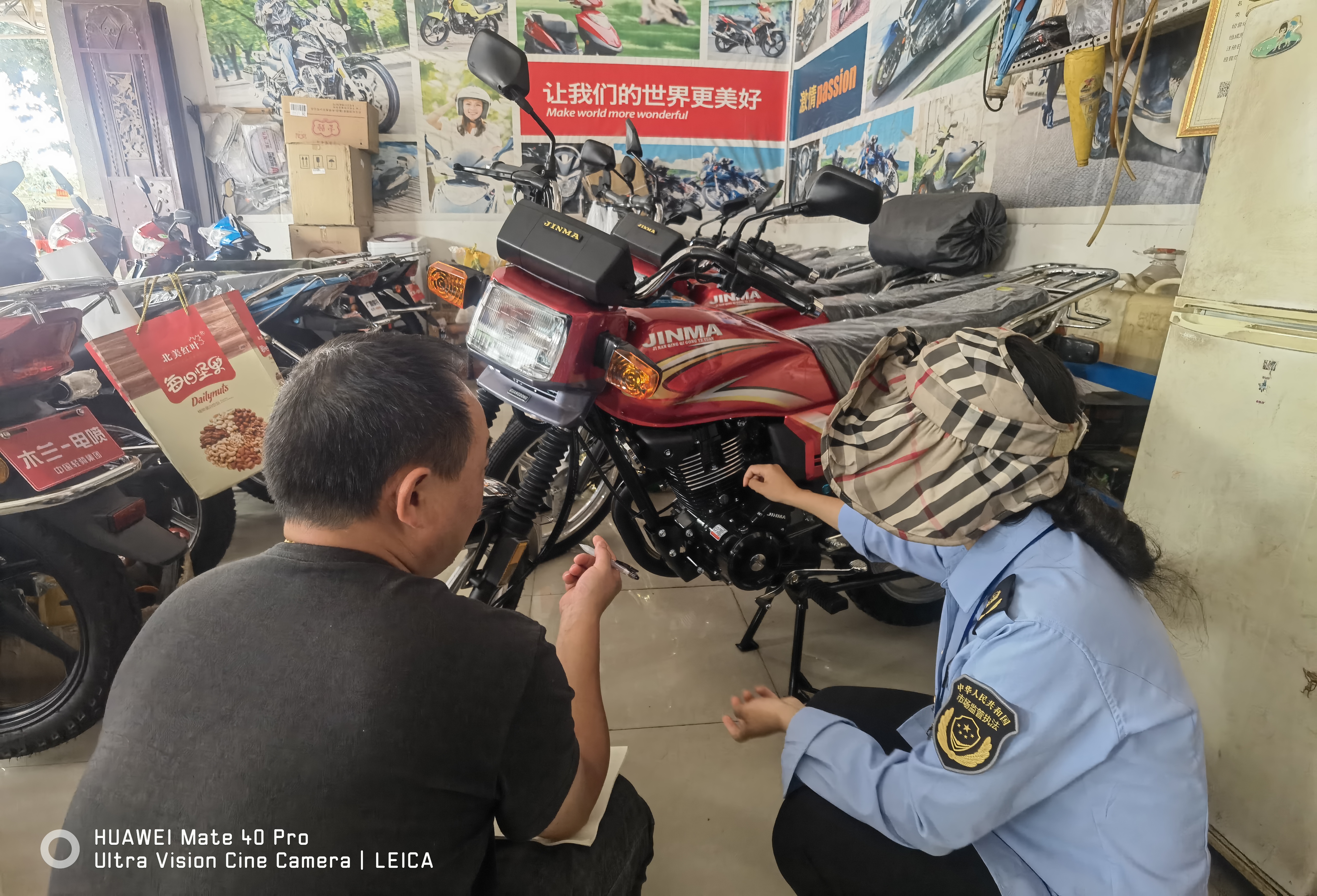 重点检查一是销售车辆实际尺寸与《机动车整车出厂合格证》、《机动车整车公告产品详细信息》是否一致。二是车架号、发动机号是不是后期打磨、重新贴上去的。三是销售的日期是否超过公告上的销售日期。四是销售的车辆是否是国三排放标准的车辆。检查过程中,一方面做好排查登记,告知商户存在以上四种情况的摩托车均会导致无法落户;另一方面,向消费者宣传为了减少自己的财产损失要购买符合标准的摩托车。