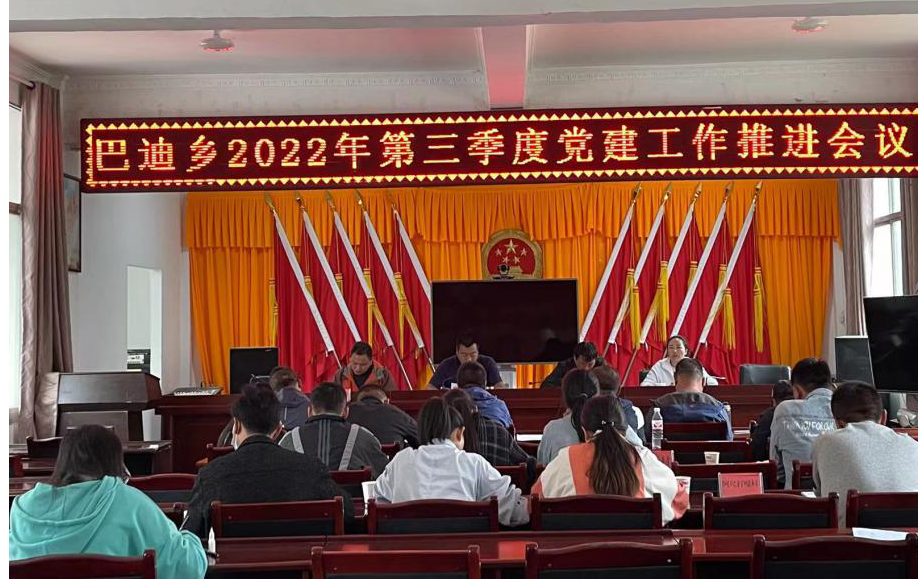 为认真贯彻落实习近平新时代中国特色社会主义思想,传达学习各级党建会议精神,及时查缺补漏、补齐短板,不塌时序抓好全年基层党建工作重点任务,9月8日,巴迪乡召开2022年第三季度基层党建工作会议。乡党政班子成员、各村党总支书记、副书记,机关各支部书记,乡党建工作领导小组办公室全体成员参与会议。