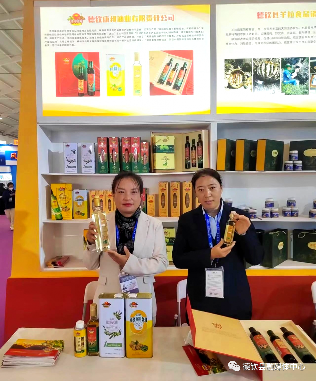 本届南博会上,德钦县阿青玛农产品开发有限公司、德钦县旭美生物开发有限公司、德钦县羊拉食品销售有限公司、德钦康邦油业有限公司、迪庆香格里拉碧罗雪山生物科技有限公司、维西僳荞农业生物科技开发有限公司、香格里拉酒业股份有限公司等16家企业,带来了富有浓郁的民族特色的青稞酒、香格里拉冰酒、藏香猪、牦牛肉、青稞花、梅里山珍、石磨青稞糌粑、松茸、羊拉藏蜜、羊肚菌、藏红花、尼西鸡、橄榄油、尼西鸡及鸡蛋,帕巴拉冰葡萄酒及一些手工艺品。