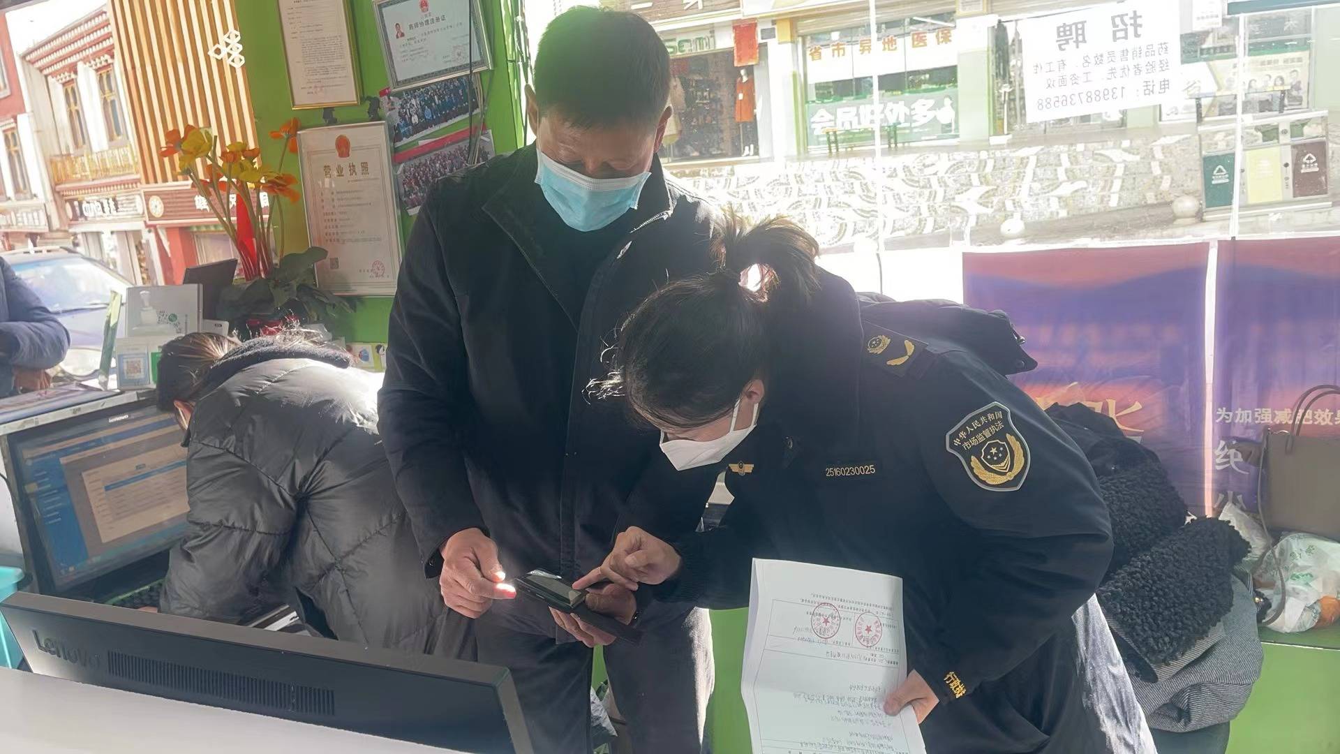 检查内容:各经营单位履行进货查验义务,检查销售的经营范围是否达标,食品来源、标识标签是否符合要求,有无销售盗用、假冒批准文号的伪劣食品产品,有无销售超过保质期的食品;春节期间稳价工作,提醒商户明码标价;疫情防控工作常态化宣传;市场监管领域防范电信诈骗宣传等。