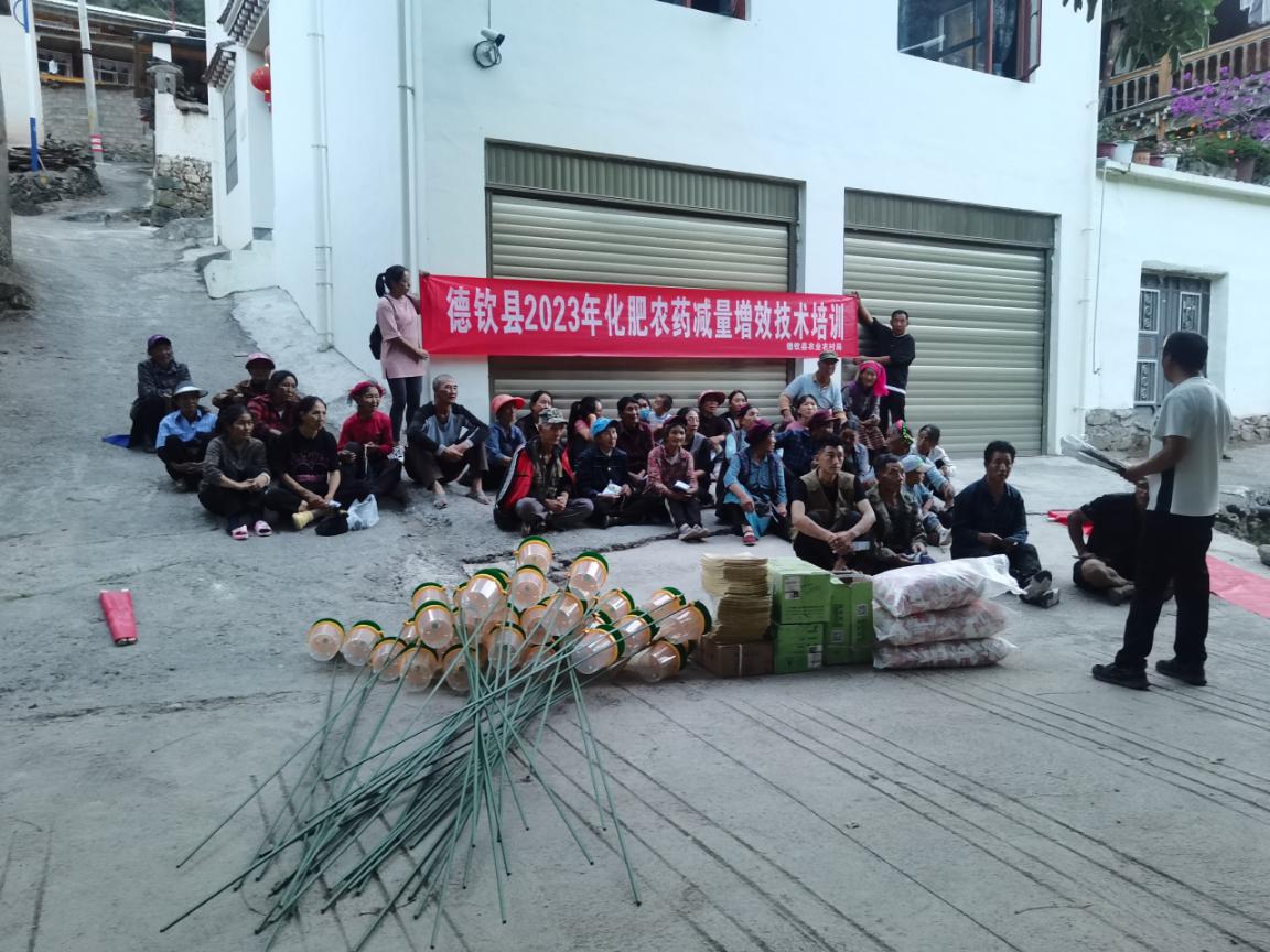 培训会上,县级专家详细的介绍了主推品种(赤霞珠)的特性,结合我县气候条件、土壤结构、灌溉条件等,围绕主推技术(高原特色优质酿酒葡萄高效栽培技术),讲解了科学施肥安全用药、病虫害绿色防控与统防统治融合、化肥农药减量增效,引导农民转变观念,提质增效发展优势葡萄产业。培训结束后,县级专家组前往辐射带动村组佛山乡溜筒江小组开展主推技术培训,受益37人,发放磷酸二氢钾450包、诱捕器37套、粘虫板1850张,技术宣传册40份。