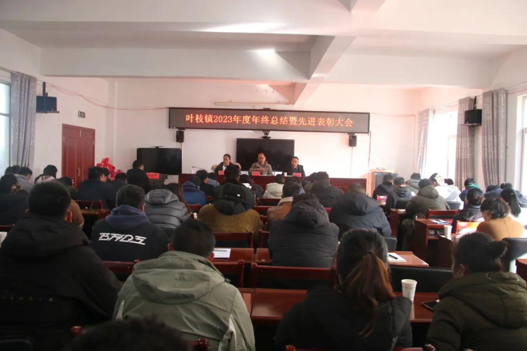 为认真总结2023年所取得的工作成绩,精心谋划2024年目标任务,营造真抓实干、再接再厉的浓厚氛围,激发全体干部的积极性和创造性,推动全镇经济社会又好又快发展。2024年1月3日,叶枝镇召开2023年度年终总结暨先进表彰大会。全镇干部职工、各村“两委”成员、驻村工作队、县驻镇各单位负责人参加了此次会议,会议由镇人民政府镇长和英主持。