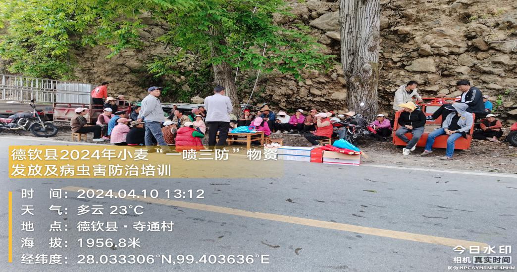当前我县小麦陆续进入扬花灌浆期,也是各类病虫害防治的关键时机。实现“虫口夺粮”对全年粮食稳增产至关重要,为切实加强小麦中后期管理,全力夺取夏粮丰收。我中心一行5人于2024年4月7日-4月11日先后到霞若乡施坝村次独顶小组;拖顶乡拖顶村巴龙小组、归龙小组;拖顶乡念萨村布卡小组、拉龙各小组、车里各小组、巴东小组;奔子栏镇夺通村夺通小组、新村小组、达布贡小组、字仁小组;叶央村哈充小组、争古小组开展小麦“一喷三防”防控工作。