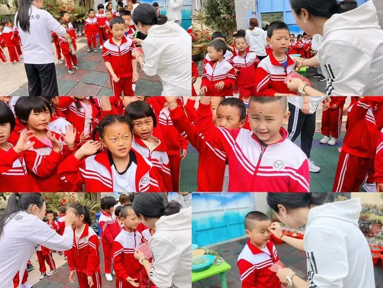 “画额面”--入园时,老师在此处用红点额头贴代替雄黄朱砂为幼儿点额头,寓意可驱避毒虫。