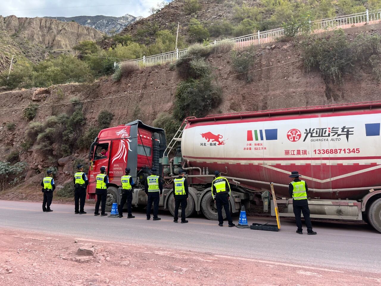德钦县公安局佛山公安检查站、派出所联合迪庆州公安局交管支队执法小分队与西藏自治区毗邻检查站、派出所在边界主要交通干道设立联合查缉点,实施24小时双向查缉机制,重点检查可疑车辆、人员及物品,严查酒驾醉驾、非法携带管制器具、危爆物品等违法行为。同时,结合“一盔一带”安全守护行动,对过往车辆开展交通安全宣传和隐患排查。