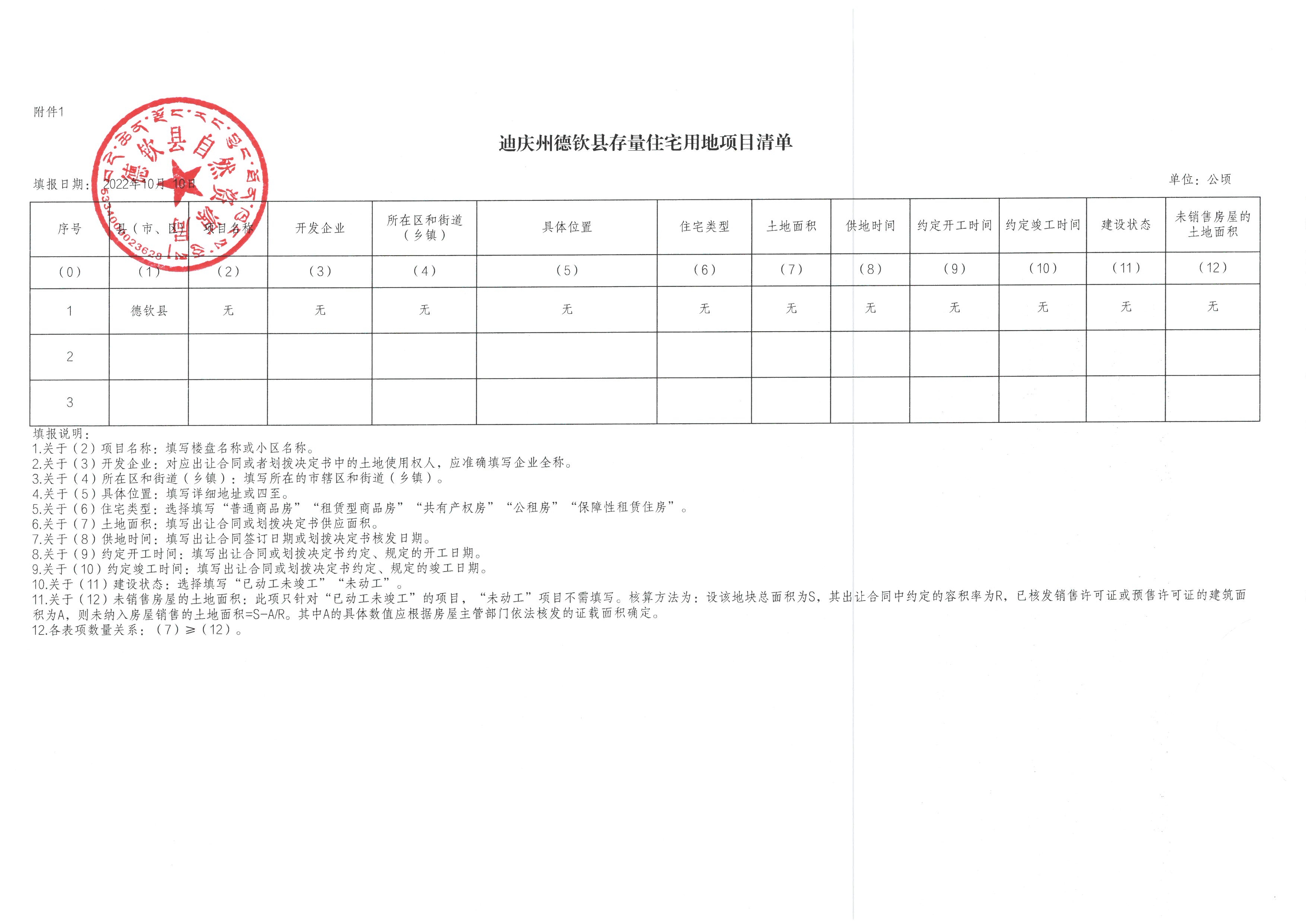 2022年德钦县第三季度存量住宅用地信息公开