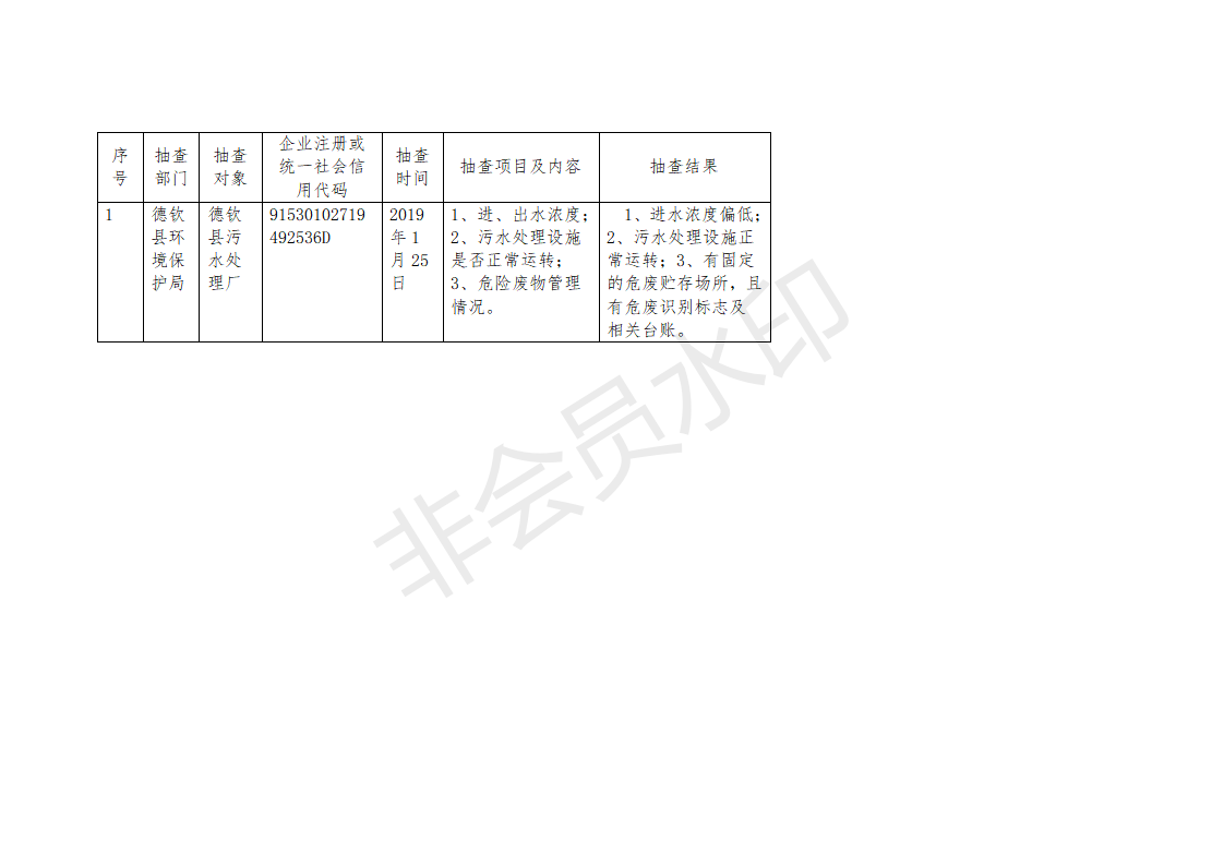 【挂牌督办和行政执法信息】德钦县环境保护局双随机抽查结果公开表(一月份)