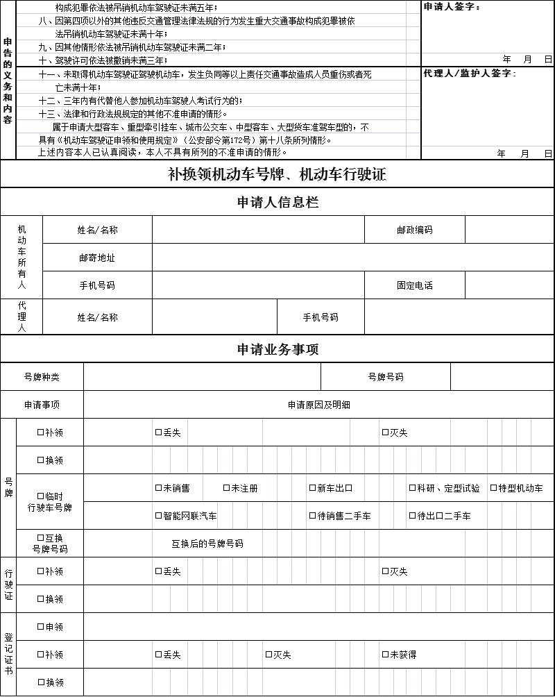(一)补换领机动车号牌。机动车号牌灭失、丢失或者损毁的。
