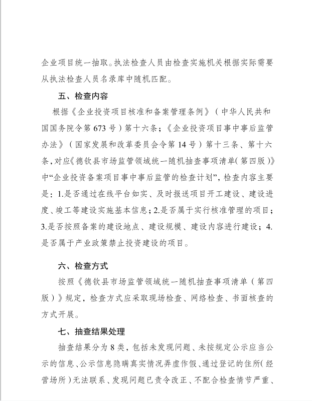 2024年企业投资备案项目“双随机、一公开” 抽查工作方案