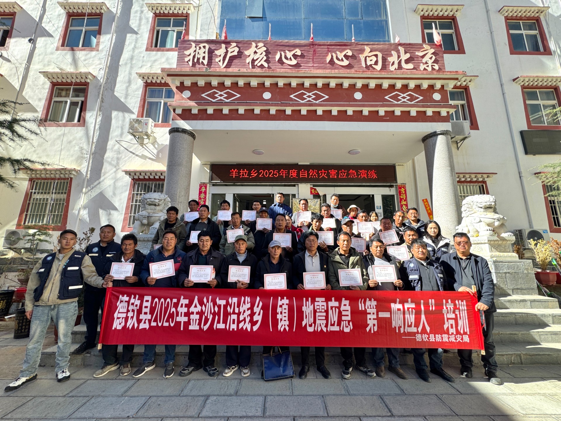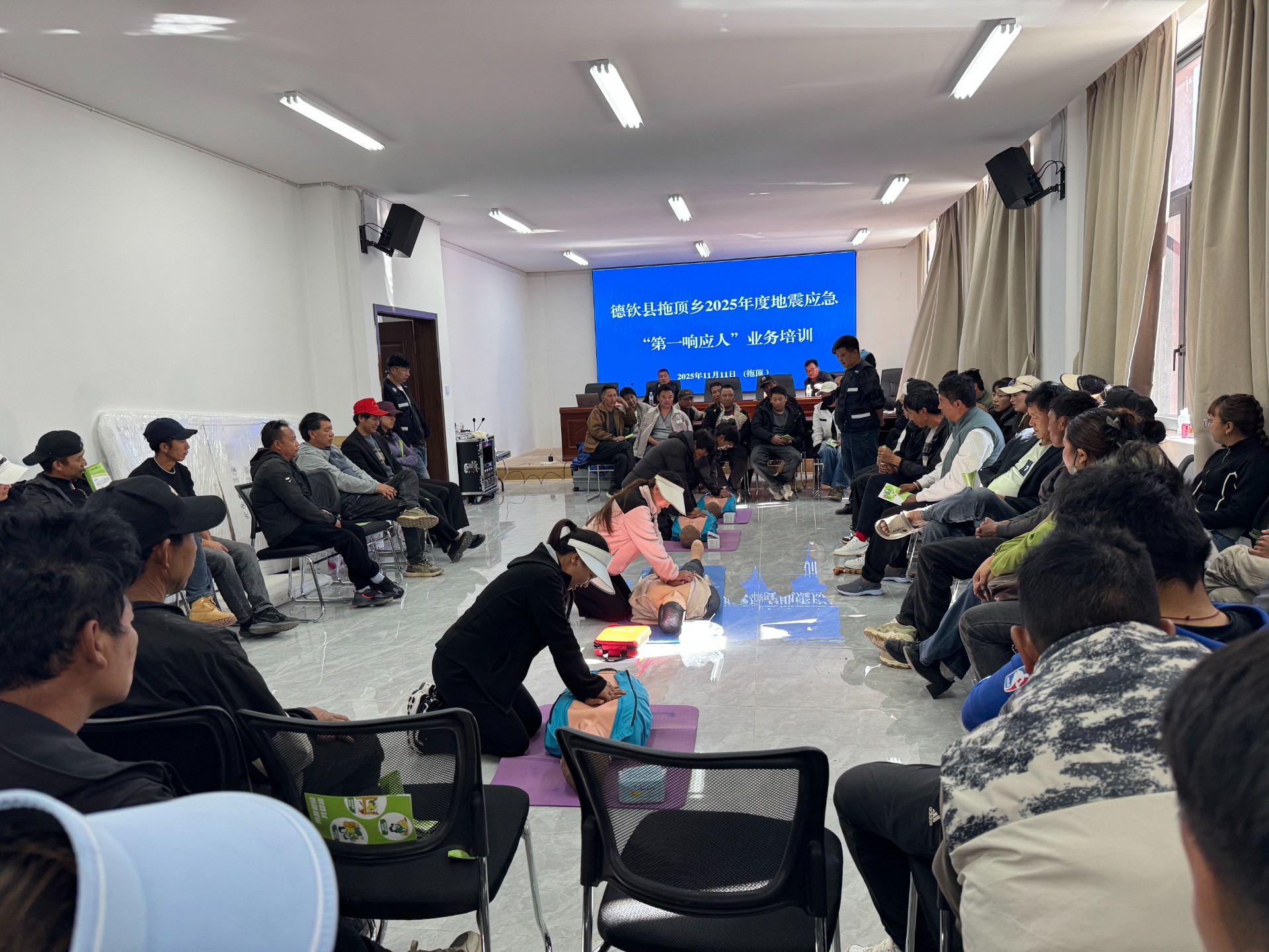 本次培训以“理论授课+实操演练+宣传普及”为核心模式,覆盖沿岸奔子栏镇、霞若乡、拖顶乡、羊拉乡四个乡镇共计 300 余名基层骨干,全程精准赋能、成效显著。本次培训紧扣德钦县金沙江沿岸板块活动频繁、地震及滑坡、泥石流等次生灾害风险较高的地域特点,组建了专业授课团队。理论课堂上,德钦县防震减灾局局长巴桑仁青围绕区域防震减灾工作部署,解读相关政策要求与应急响应流程;维西县防震减灾局和如海同志结合实战经验,通过典型案例讲解“第一响应人”搜索技术、自救基本技能,救援基本常识及其救援基本技能;德钦县防震减灾局办公室工作人员永金拉木讲解地震灾情概述、灾情信息的重要性,灾情信息收集办法,灾情信息上报要点,内容兼具专业性与实用性。