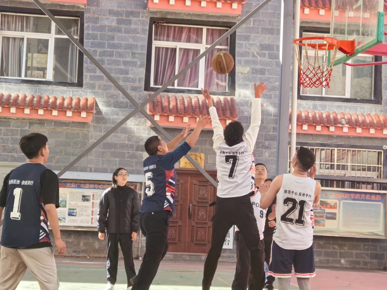 篮球对抗赛中,所有队员奋力拼搏,积极攻防,整场比赛激烈对抗,巧攻妙传,好球不断,气氛浓烈,展现了民辅警敢于拼搏、勇于争先的良好精神风貌。