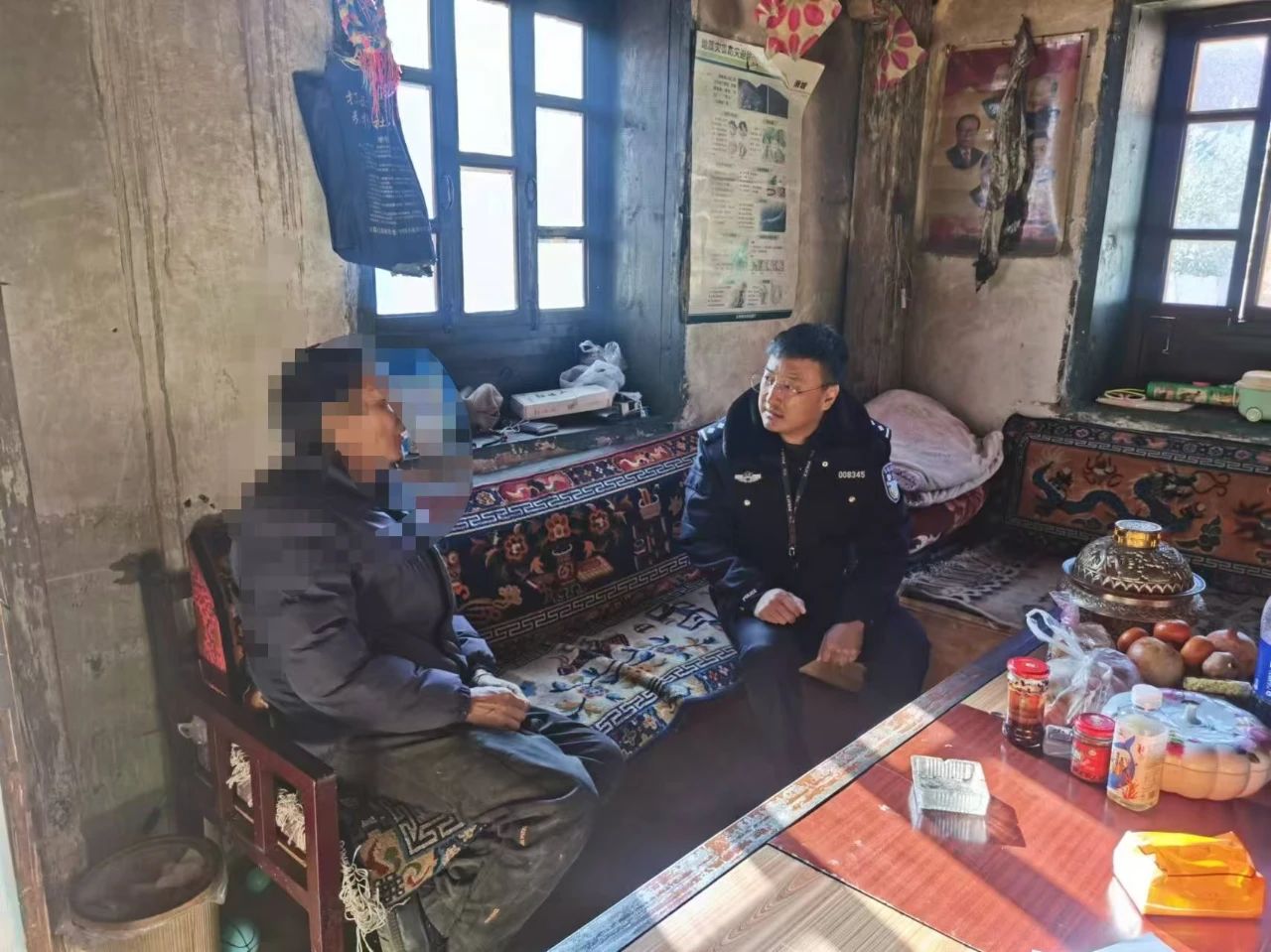 岁末年初,在元旦节即将来临之际,德钦县公安局佛山派出所党支部组织党员民警开展“我为群众办实事”活动,走访了辖区五个村委会,看望慰问了困难家庭及特殊群体家庭,给群众送上了一份冬日的温暖。
