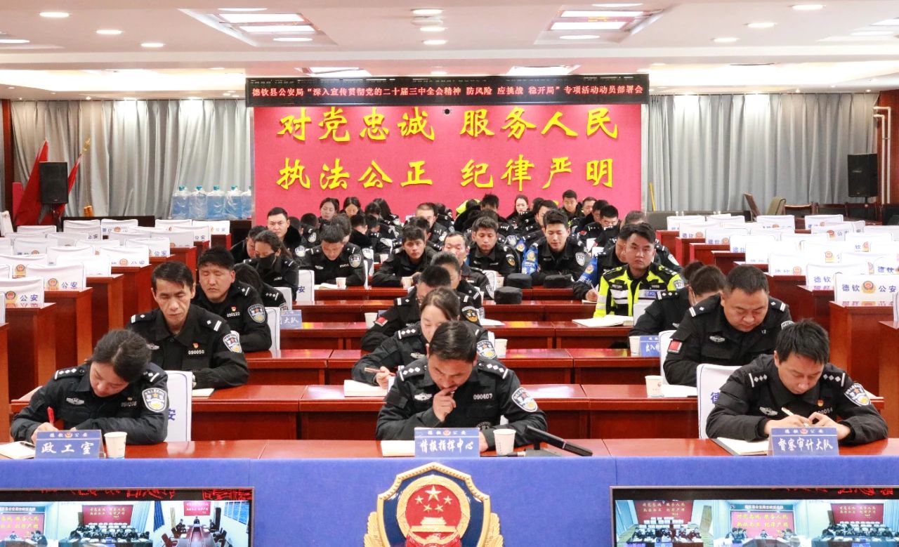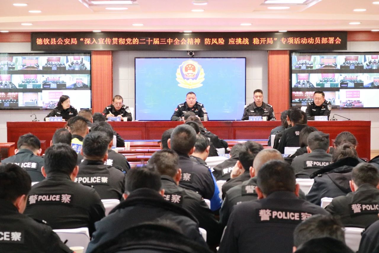 2025年2月18日,德钦县公安局组织召开“深入宣传贯彻党的二十届三中全会精神防风险、应挑战、稳开局”专项活动动员部署会,副县长、公安局长杨晓军出席会议并作动员部署,党委专职副书记次里丁主主持会议。