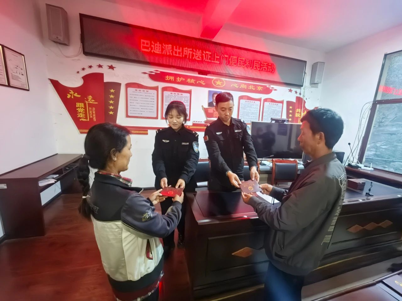 为进一步优化服务举措,巴迪派出所简化服务流程,推出户口簿统一变更发放服务,由业务熟练的户籍民辅警负责办理,从材料收集到证件送达,实现“一站式”服务。