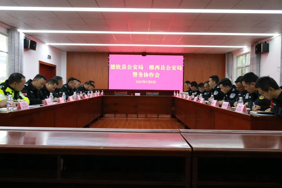 为积极适应新形势下社会稳定发展新要求,进一步加强毗邻县市警务交流合作,提升资源共享、信息共通、风险共防、安全共筑的协同作战能力,合力推进德钦、维西两地社会治安大局持续安全稳定,助力全州长治久安。5月8日,德钦县公安局、维西县公安局召开警务协作交流会议,德钦县副县长、县公安局长杨晓军,维西县副县长、县公安局局长张勇出席会议并讲话,两县公安副局长及有关警种、毗邻派出所负责人参加会议。
