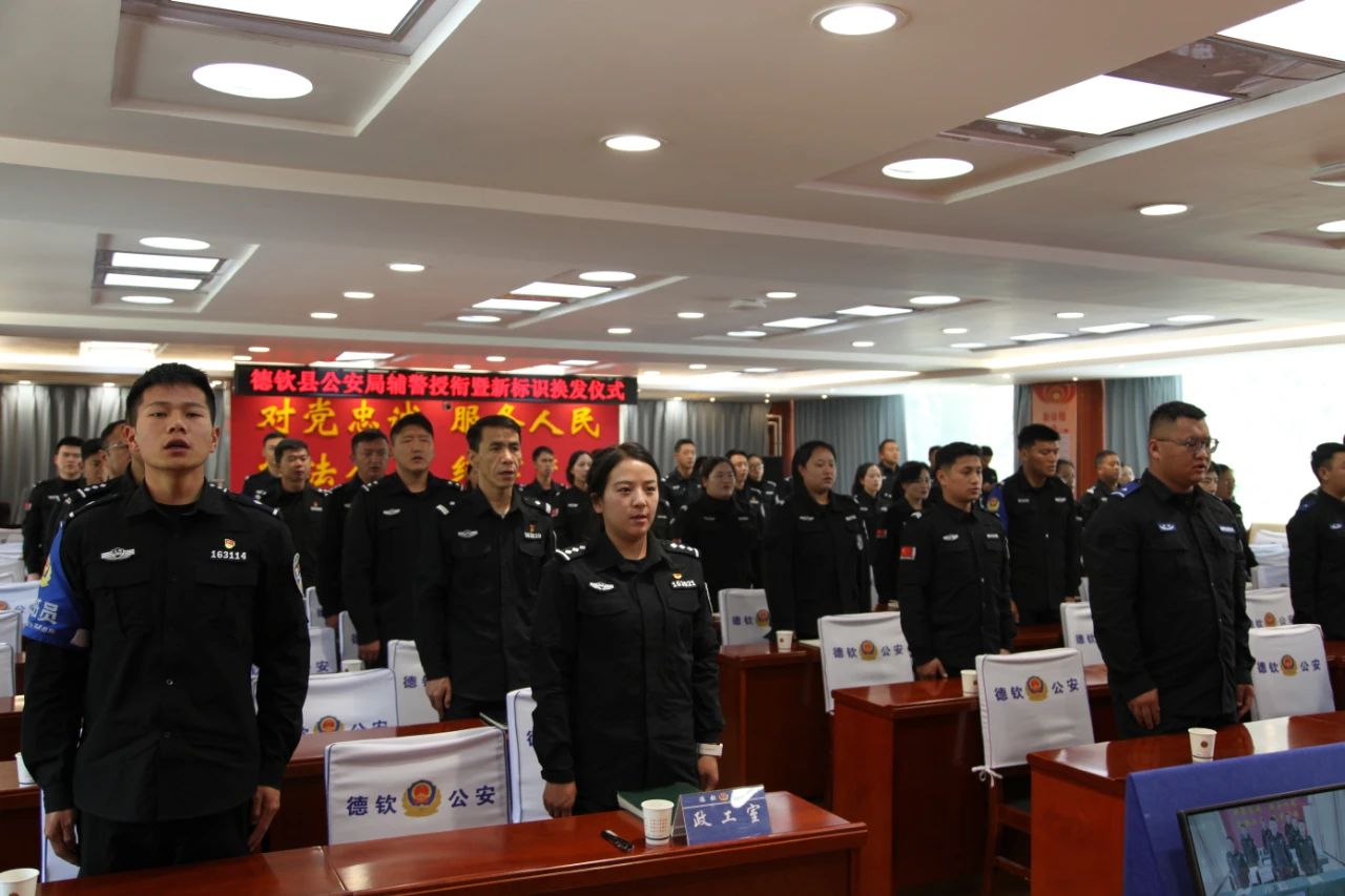 为深入贯彻落实全国公安工作会议精神,进一步提升辅警队伍职业荣誉感、归属感、获得感和认同感,持续加强辅警队伍规范化管理和队伍正规建设,不断激发全警的凝聚力和战斗力。2025年6月9日上午,德钦县公安局隆重举行辅警授衔暨新标识换发仪式。县人民政府副县长、公安局党委书记、局长杨晓军出席授衔仪式并做重要讲话。
