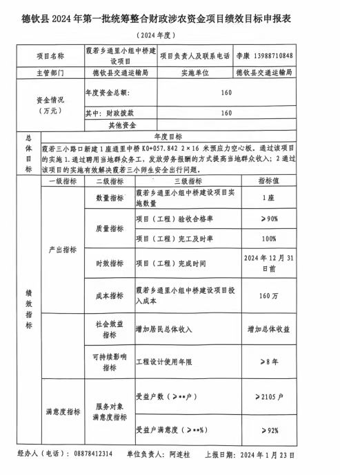 霞若乡通里中桥建设项目绩效目标申报表,羊拉公路(德巴段)路面硬化项目绩效目标申报表