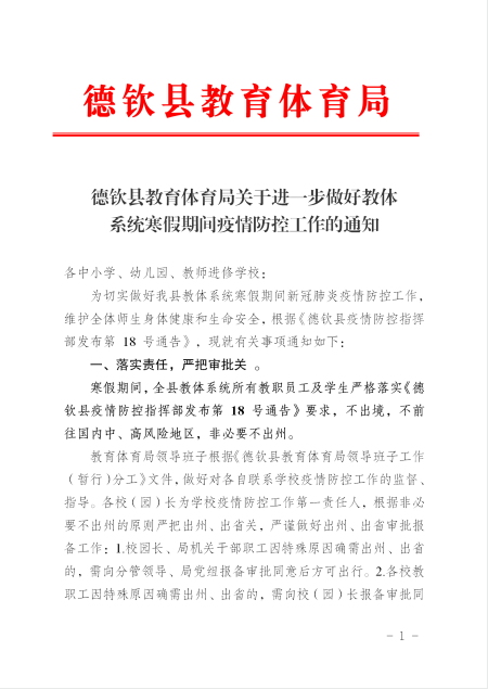 【动态信息】德钦县教育体育局关于进一步做好教体 系统寒假期间疫情防控工作的通知