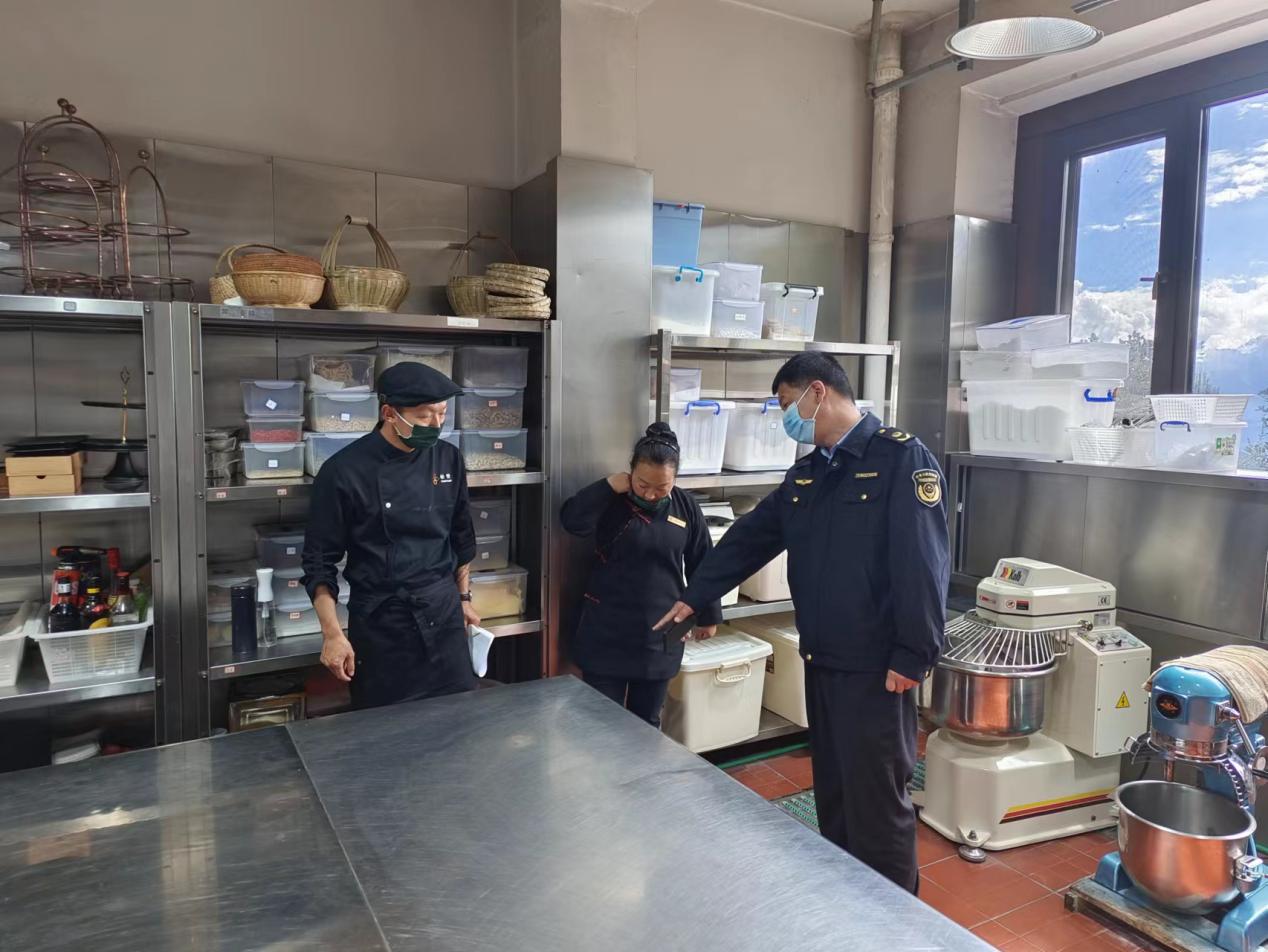 202年9月15日至9月16日,德钦县为保障乡村食品就餐供餐安全,为确广大群众就餐安全,我局于2022年1月14日成立德钦县斯鲁小组食品安全保障活动保障小组,之后,由2名执法人员前往德钦县羊拉乡茂顶村斯鲁小组扎希雅珠农家乐与德钦县升平镇雾浓顶小组松赞梅里酒店进行事前保障,主要就食品储存、设施设备及运转、食品加工过程、从业人员等方面进行检查。