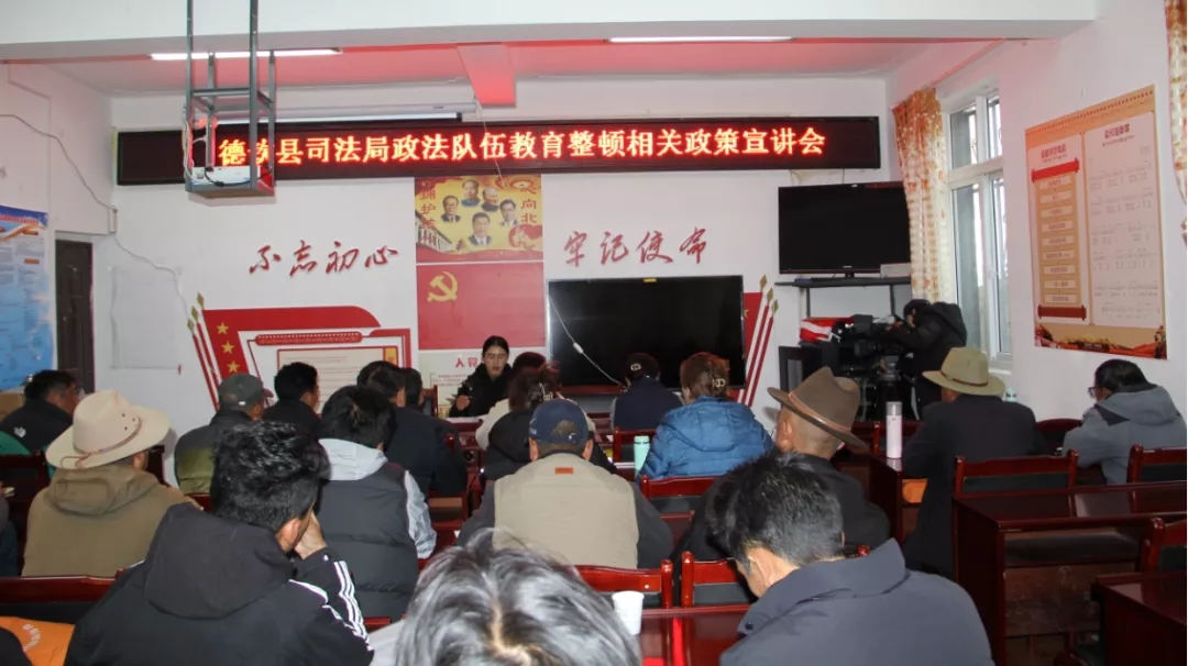 为进一步推动司法行政队伍教育整顿工作学习教育环节“我为群众办实事”实践活动走深走实,把队伍教育整顿学习成果转化成为工作成果,坚持开门搞整顿,营造浓厚的政法队伍教育整顿氛围,在升平镇召集49个村民小组组长及村、社区两委新任成员培训之际,德钦县司法局于2021年4月2日开展政法队伍教育整顿相关政策宣讲会。
