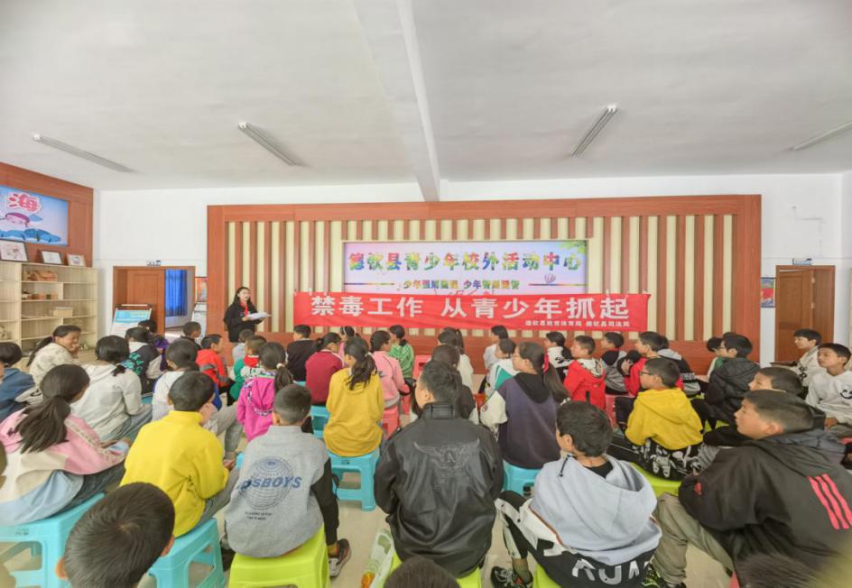 为进一步强化未成年人思想道德教育建设,营造“健康人生、绿色无毒”的浓厚氛围德钦县司法局联合教育体育局在德钦县青少年法治教育基地组织德钦县第一小学学生开展“6.26”国际禁毒日主题宣传教育活动。