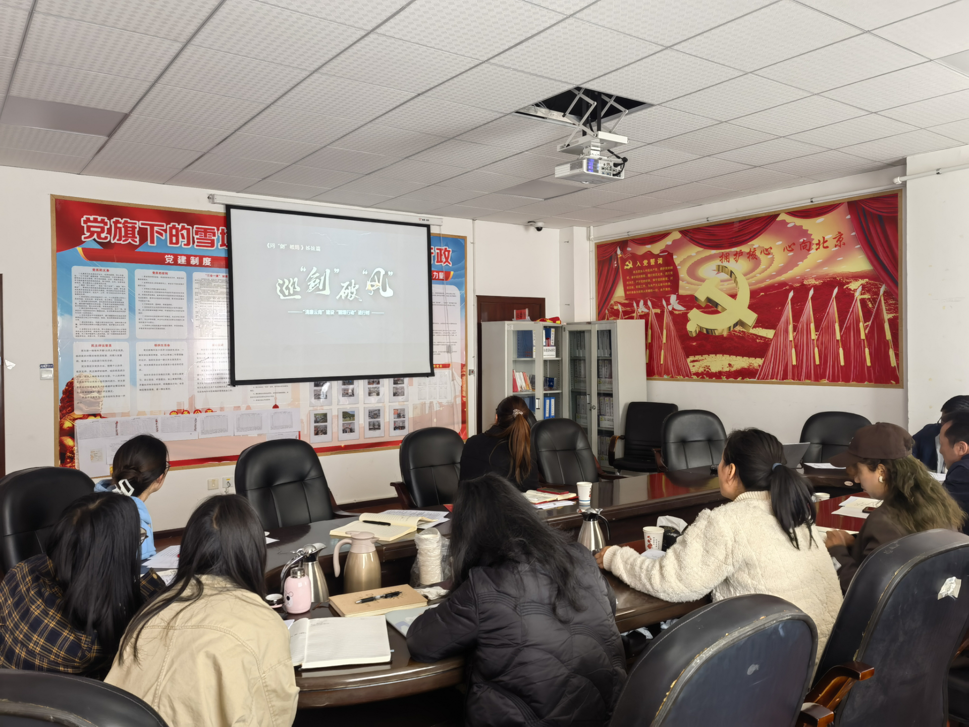 会议组织全体党员观看《巡“剑”破“风”》专题教育片,学习县委贯彻落实中央八项规定精神实施办法及关于实施加强纪律作风建设的“一学两严七提升”十项措施,并组织党员签订《落实中央八项规定精神承诺书》。