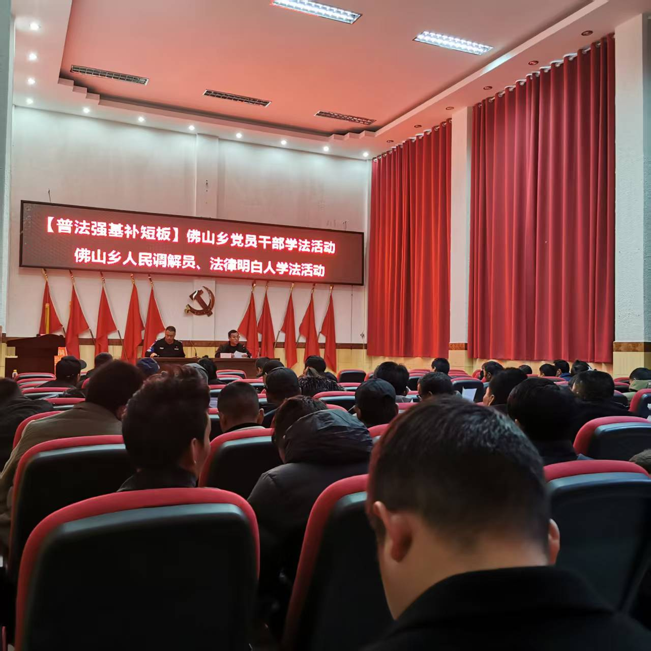 为深化基层法治建设,提升农村党员干部及基层治理队伍的法律意识和履职能力,佛山司法所和派出所于3月25日在佛山乡党委举办的“党员基础培训班”第一期培训上,围绕“预防电信诈骗、常态化扫黑除恶、农民工工资保障”等热点问题开展专题普法教育。全乡机关党员、村三委干部、各小组支部书记、村综合治理员及部分农村党员等120余人参加培训,为乡村振兴筑牢法治防线。