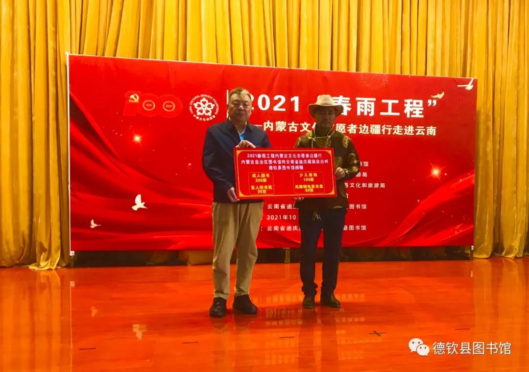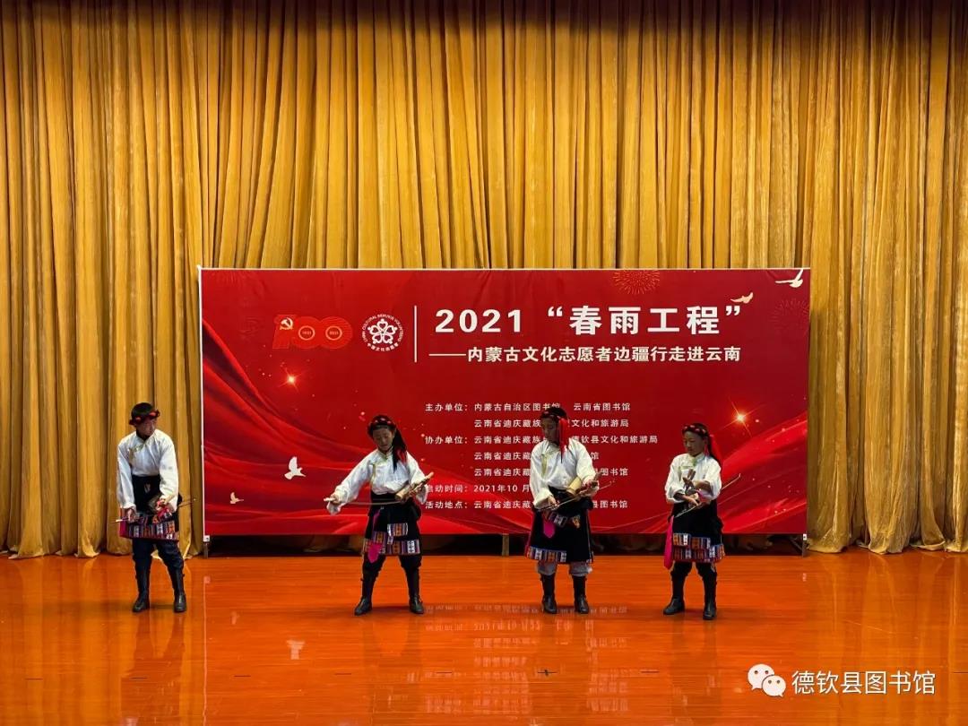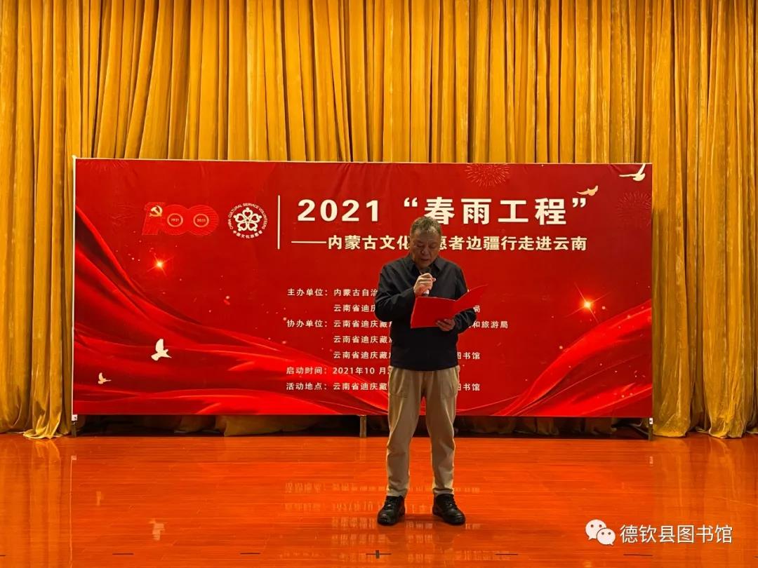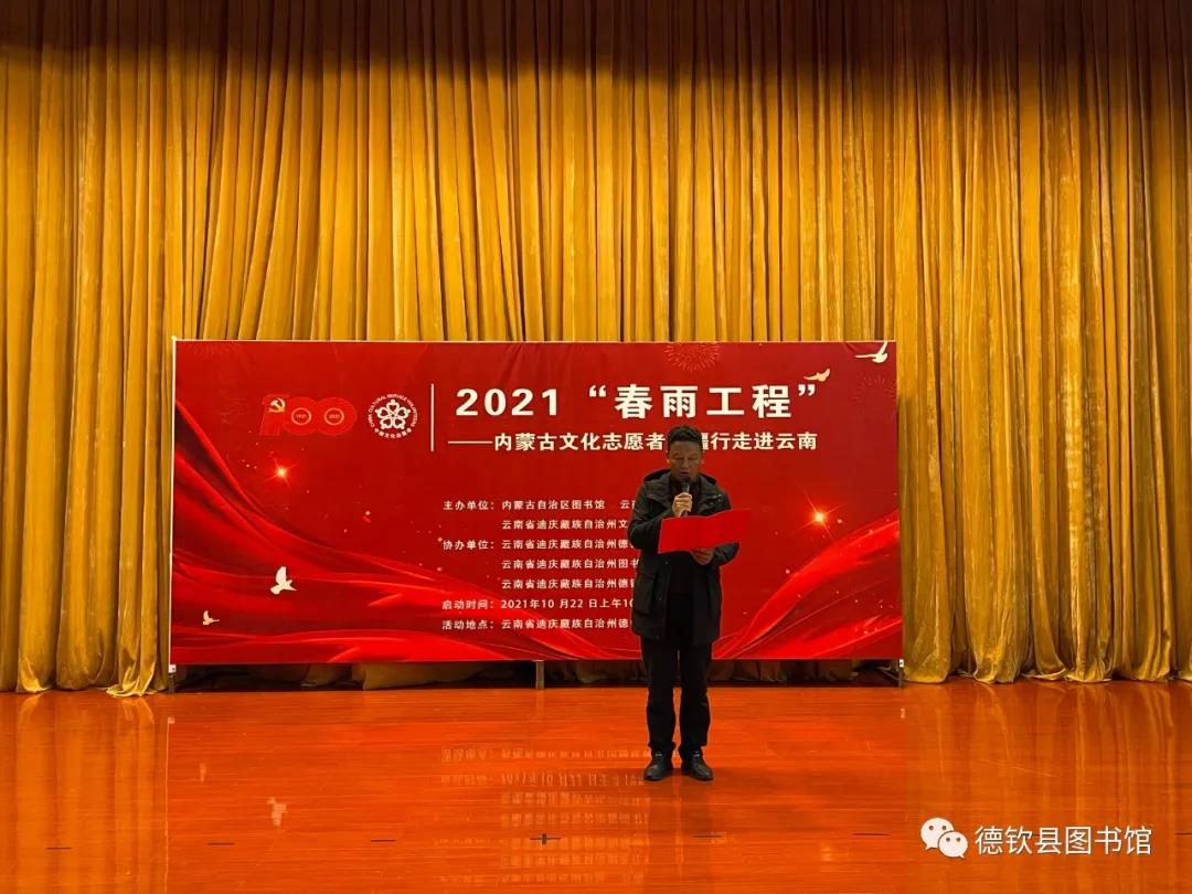 10月22日,由内蒙古自治区图书馆、云南省图书馆、迪庆州图书馆、德钦县文化和旅游局共同举办的,以庆祝中国共产党成立100周年为主题的,“春雨工程内蒙古文化志愿者边疆行活动”在德钦县图书馆正式启动。