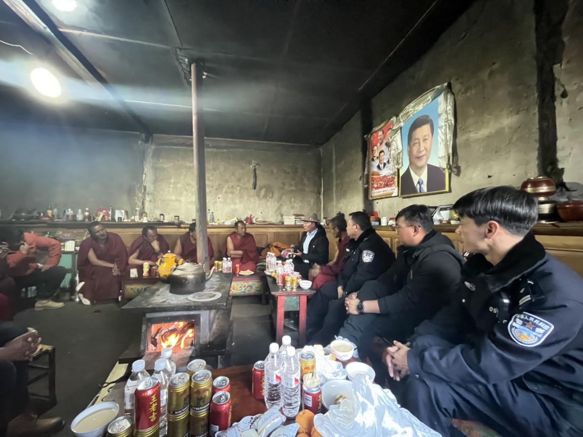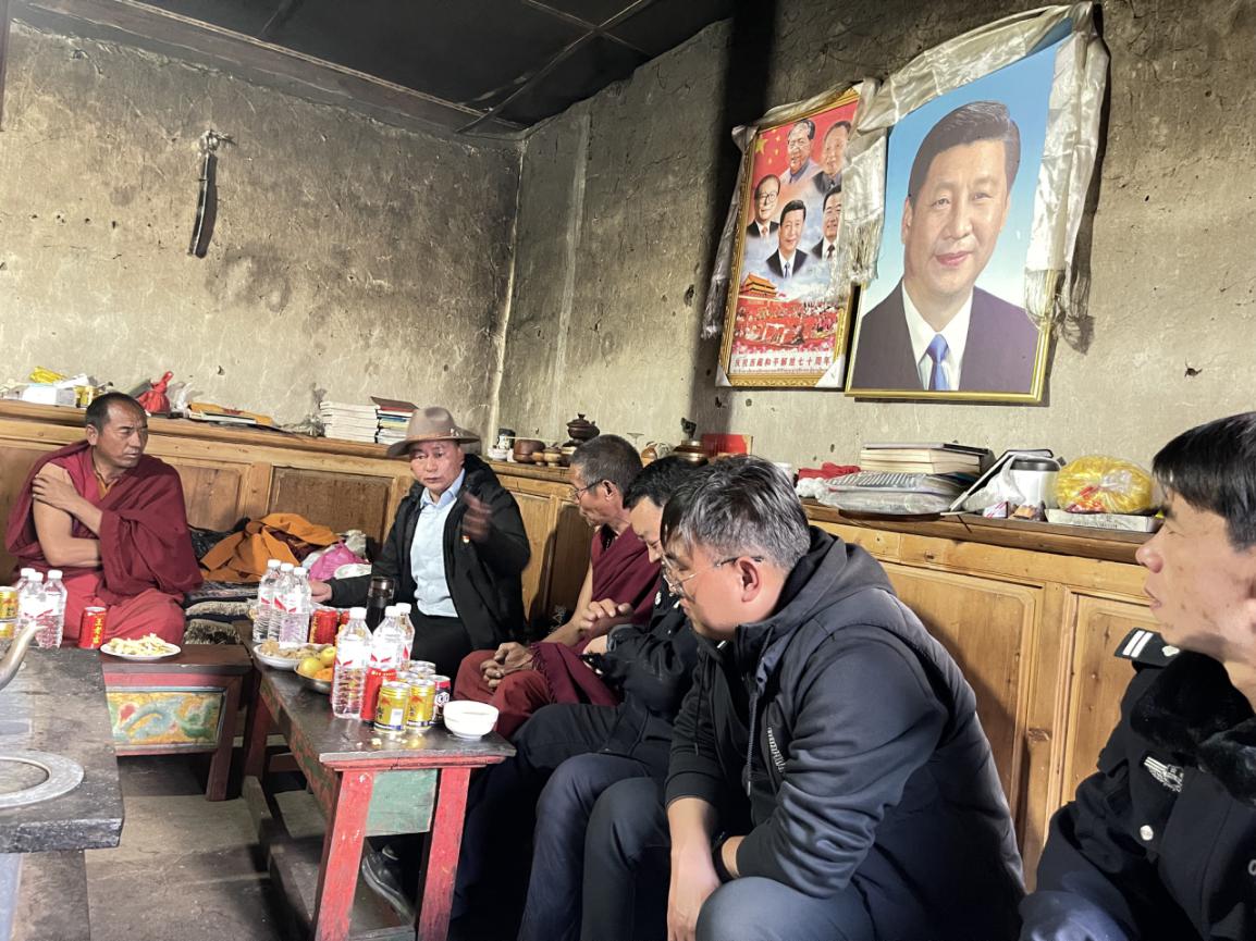 2月24日晚,羊拉乡党委书记和寺管局、派出所、甲功村等相关负责人,深入辖区寺院走访慰问,与僧侣沟通交流、交心谈心,询问僧侣学经和日常佛事活动开展情况,并就做好羊拉乡宗教管理工作提出殷切希望:一是广大僧侣和信教