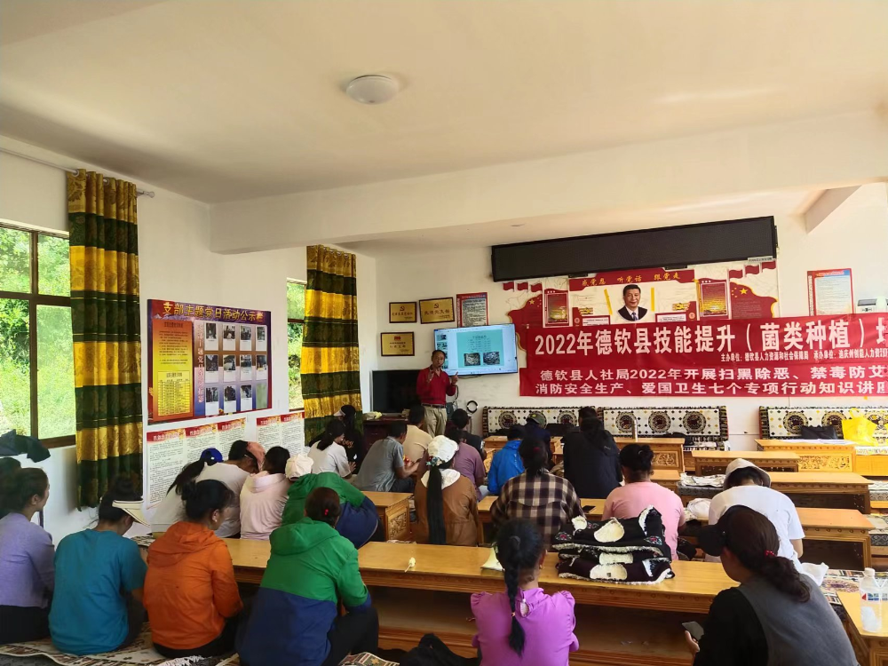 为促进少数民族地区经济发展,提高种农村日常生活水平,2022年8月6日至8月11日由德钦县人力资源和社会保障局主办,迪庆州创能人力资源职业技能培训学校承办的菌类种植培训班在德钦县燕门乡巴东村顺利开班。