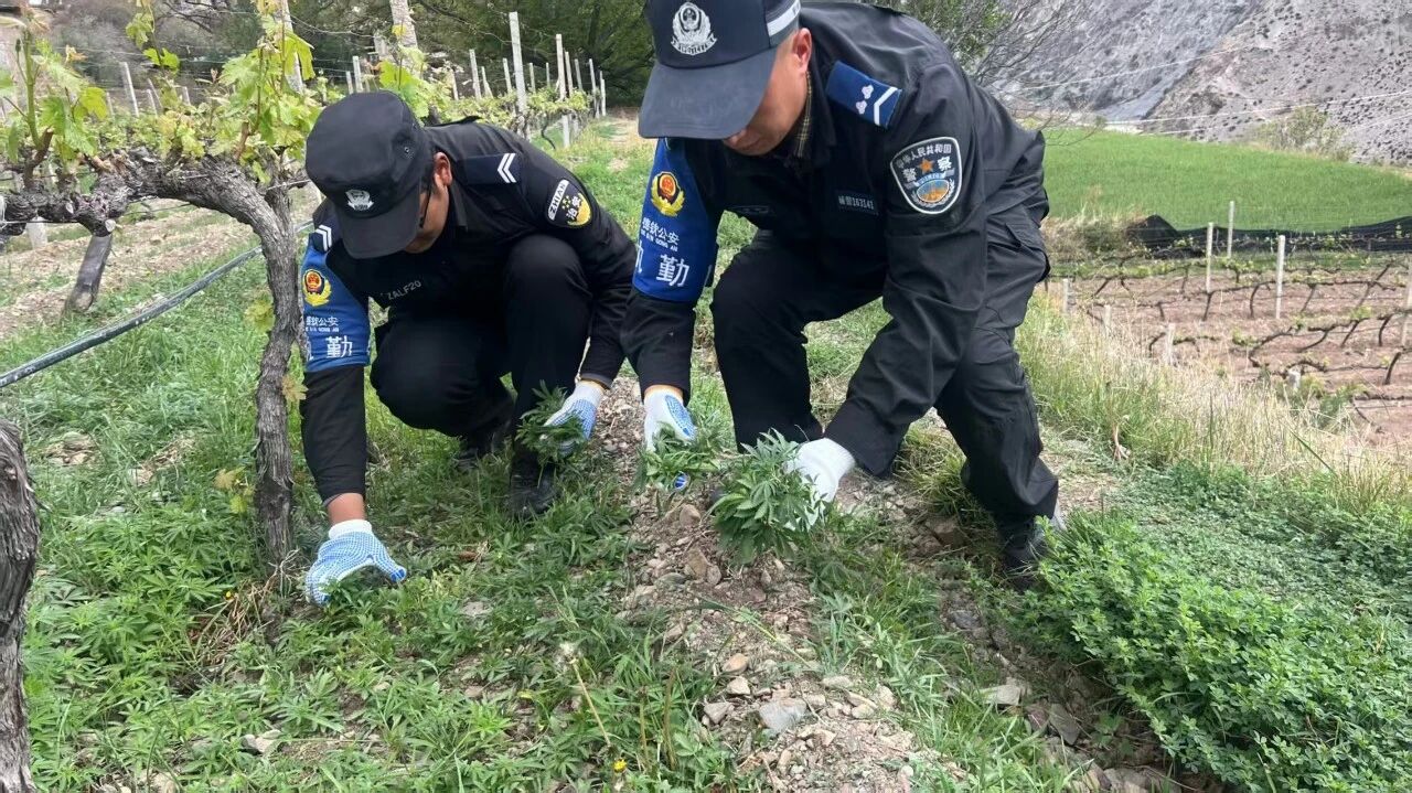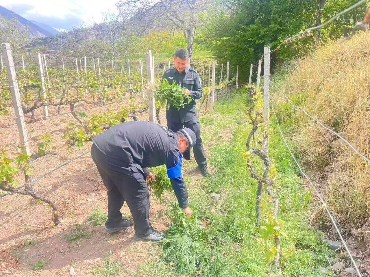 行动中,民辅警深入山林田间、房前屋后、闲置地块等重点场所,开展全覆盖、无死角、拉网式踏查排查。经过细致排查,现场依法铲除野生大麻1000余株。