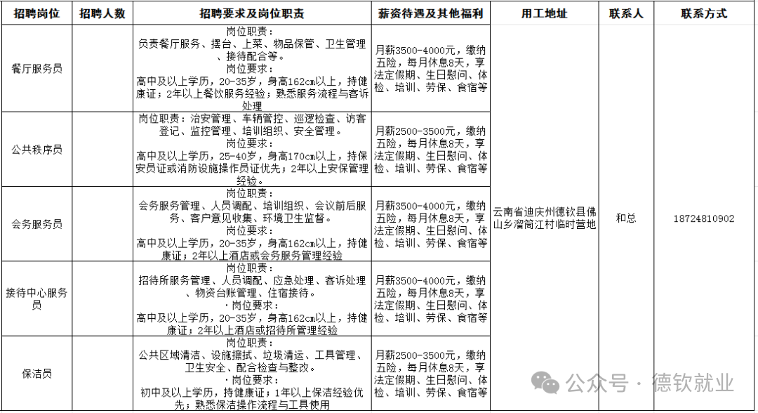 “好就业,就好业”2026德钦零工市场就业岗位推荐(五)