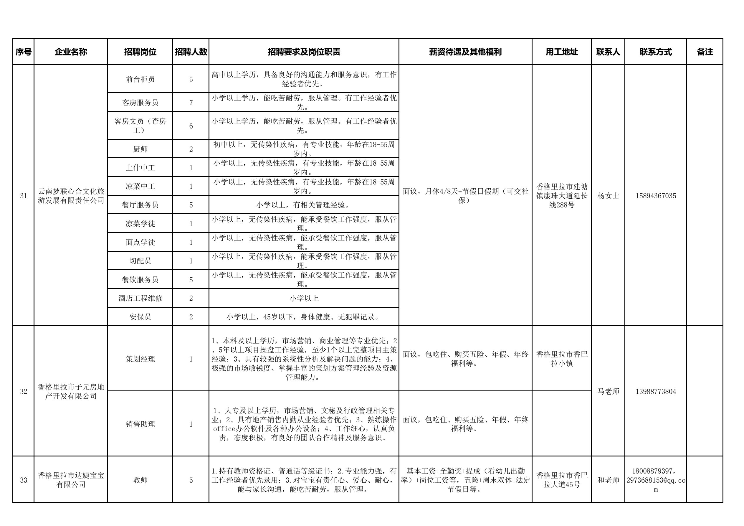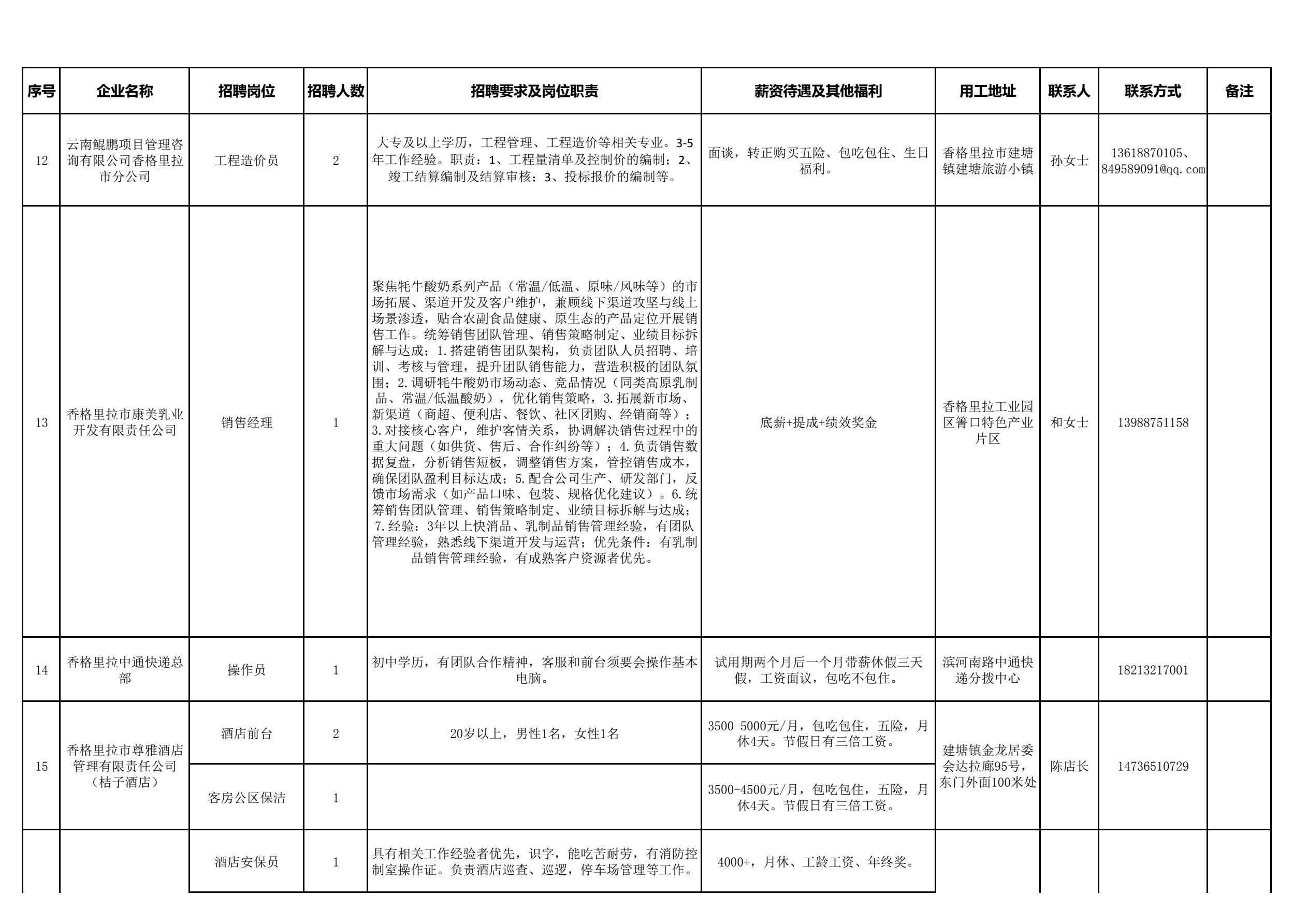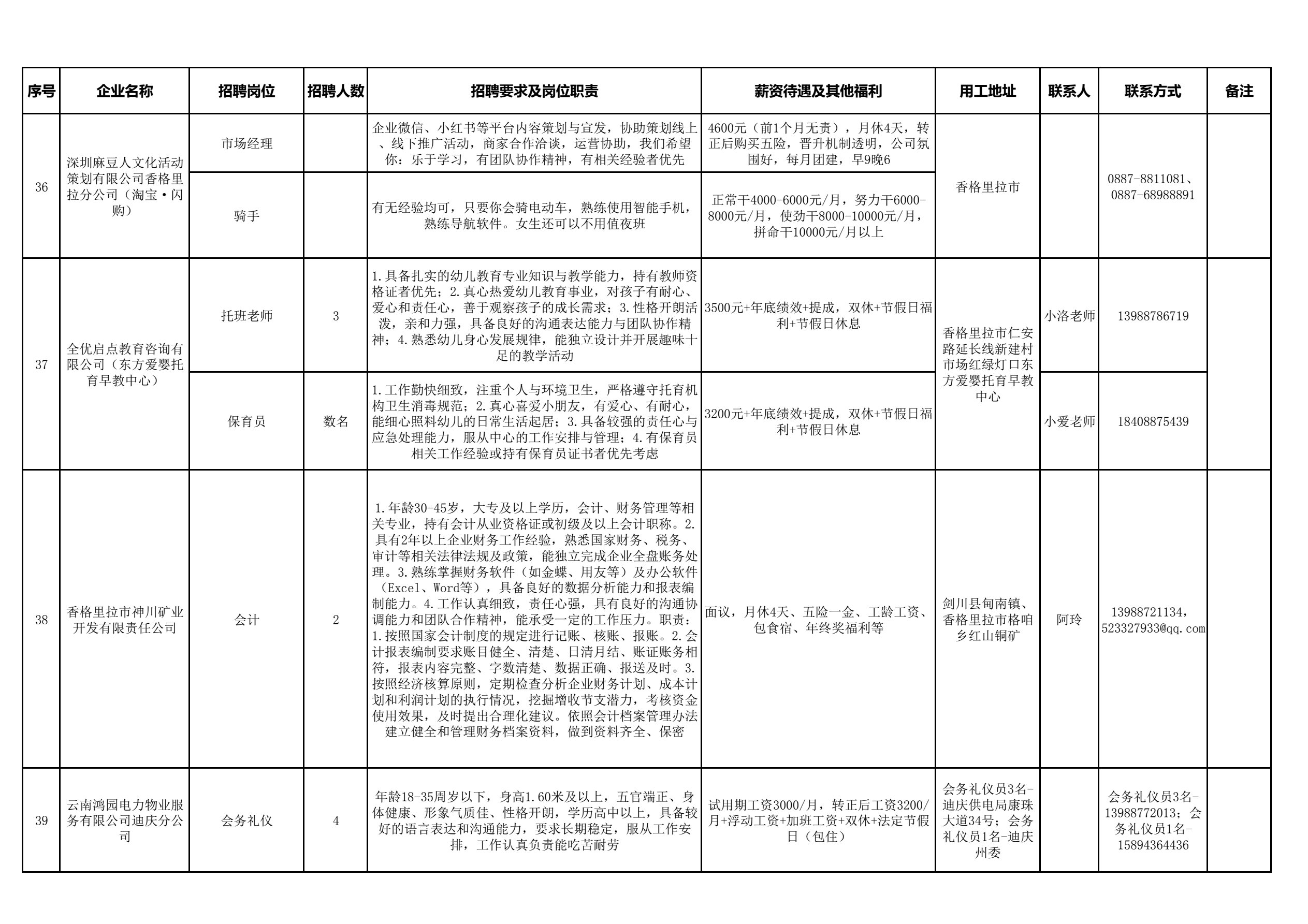 德钦县2026年“春风行动”暨“就业援助月”专项服务最新招聘岗位信息4月(第2期)